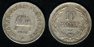 Vengrija 10 filerių 1908 m., KM#482, XF-