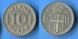 Islandija 10 erių 1940 m., KM#1.2, XF