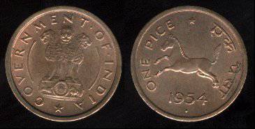 Indija 1 paisa 1953 m. (b), KM#1.4, Unc
