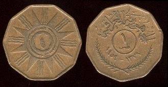 Irakas 1 filsas 1959 m., KM#119, XF
