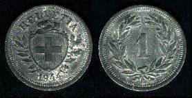 Šveicarija 1 rapenas 1944 m., KM#3a, XF-