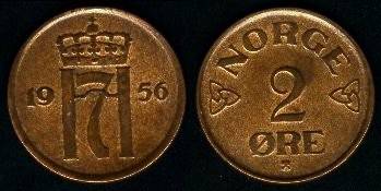 Norvegija 2 erės 1953 m., KM#399, XF