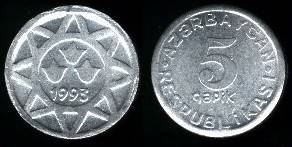 Azerbaidžanas 5 kapikai 1993 m., KM#1a, Unc-