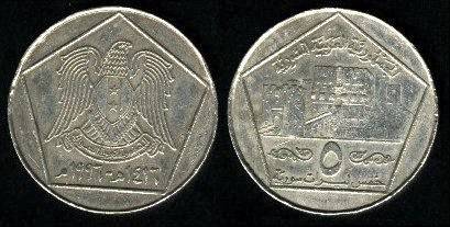 Sirija 5 svarai 1996 m., KM#123, BU