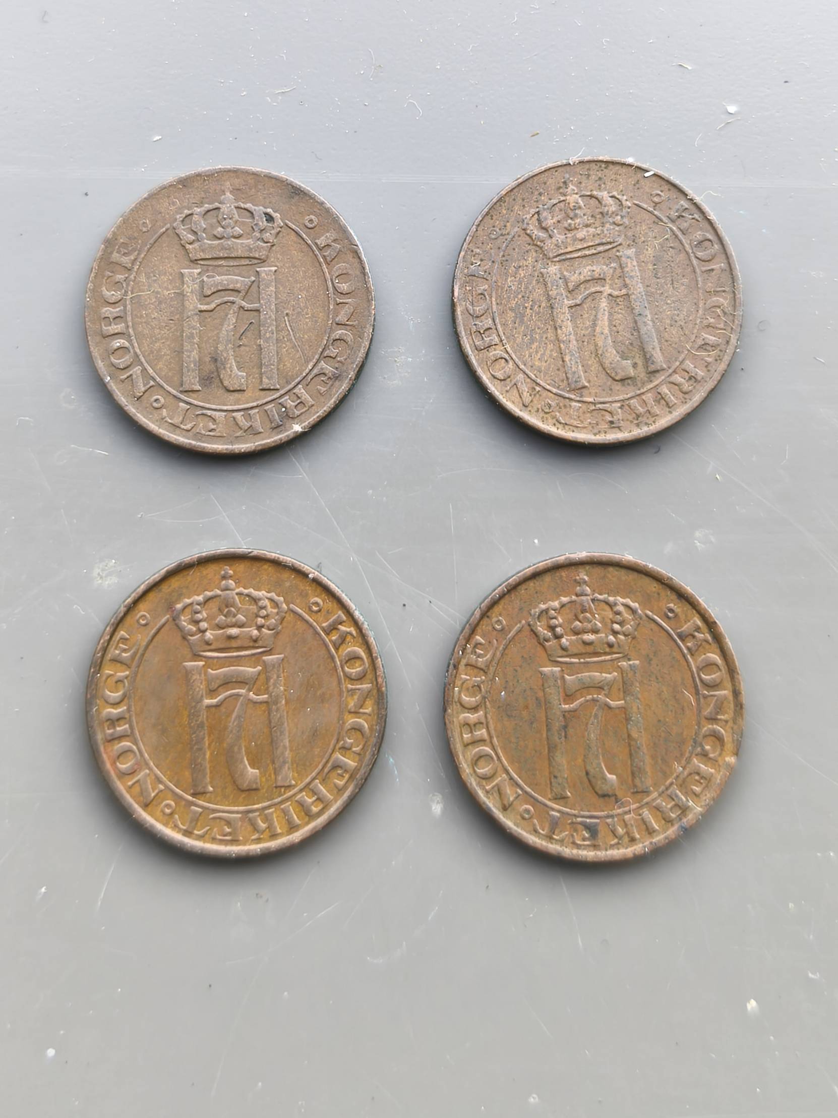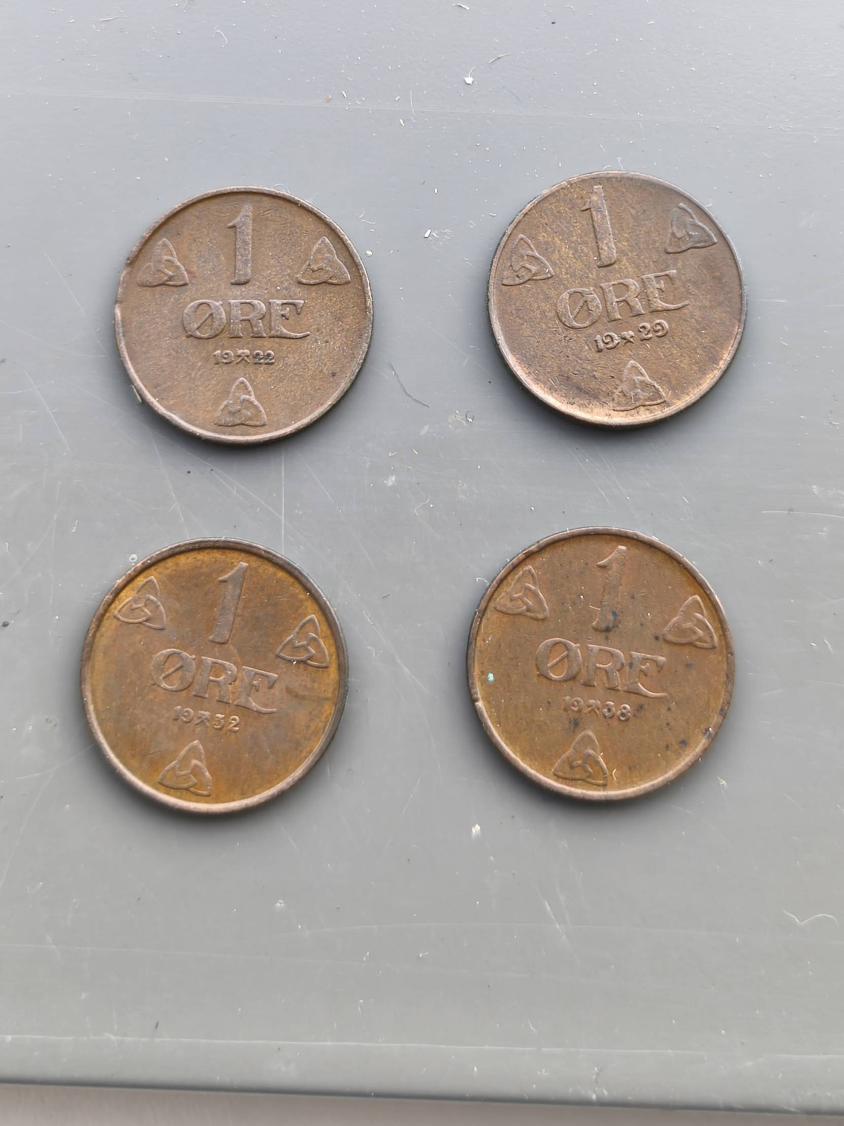 moneta 4 vnt. 1922 + 29 + 32+38 m. 1 ore Norvegija