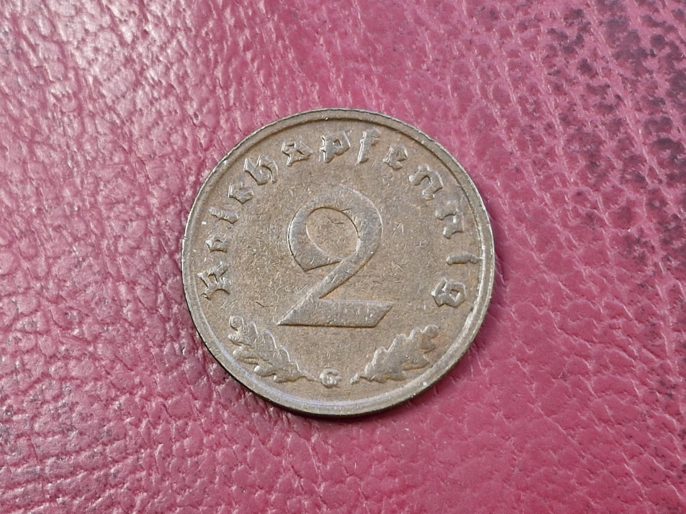Trečiasis Reichas 2 reichspfenigai, 1939G KM# 90