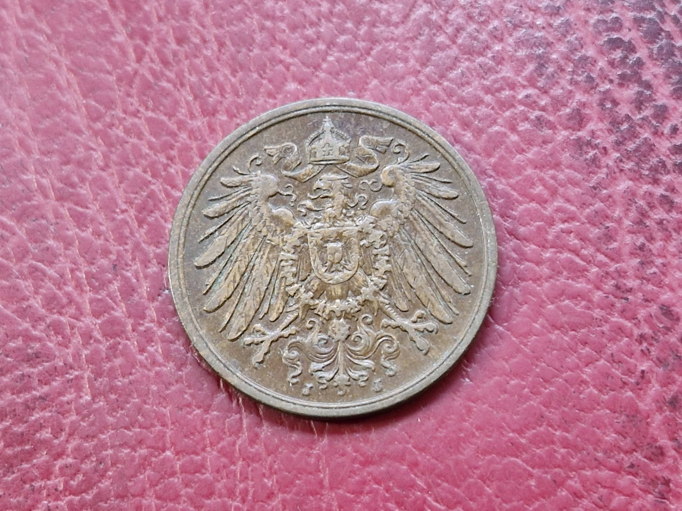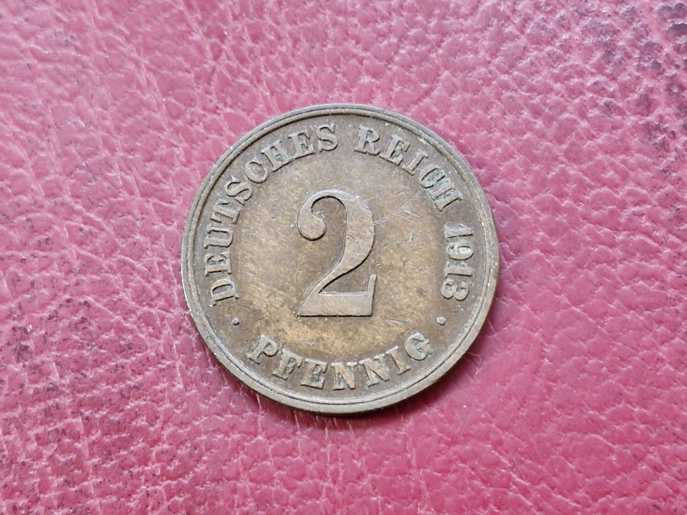 1913, Germany, pfennig, 2