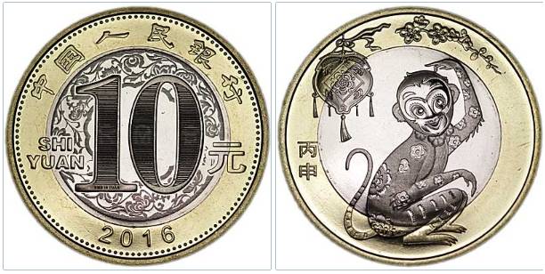 Kinija 2016 10 YUAN.#104.Beždžionės metai.....2583