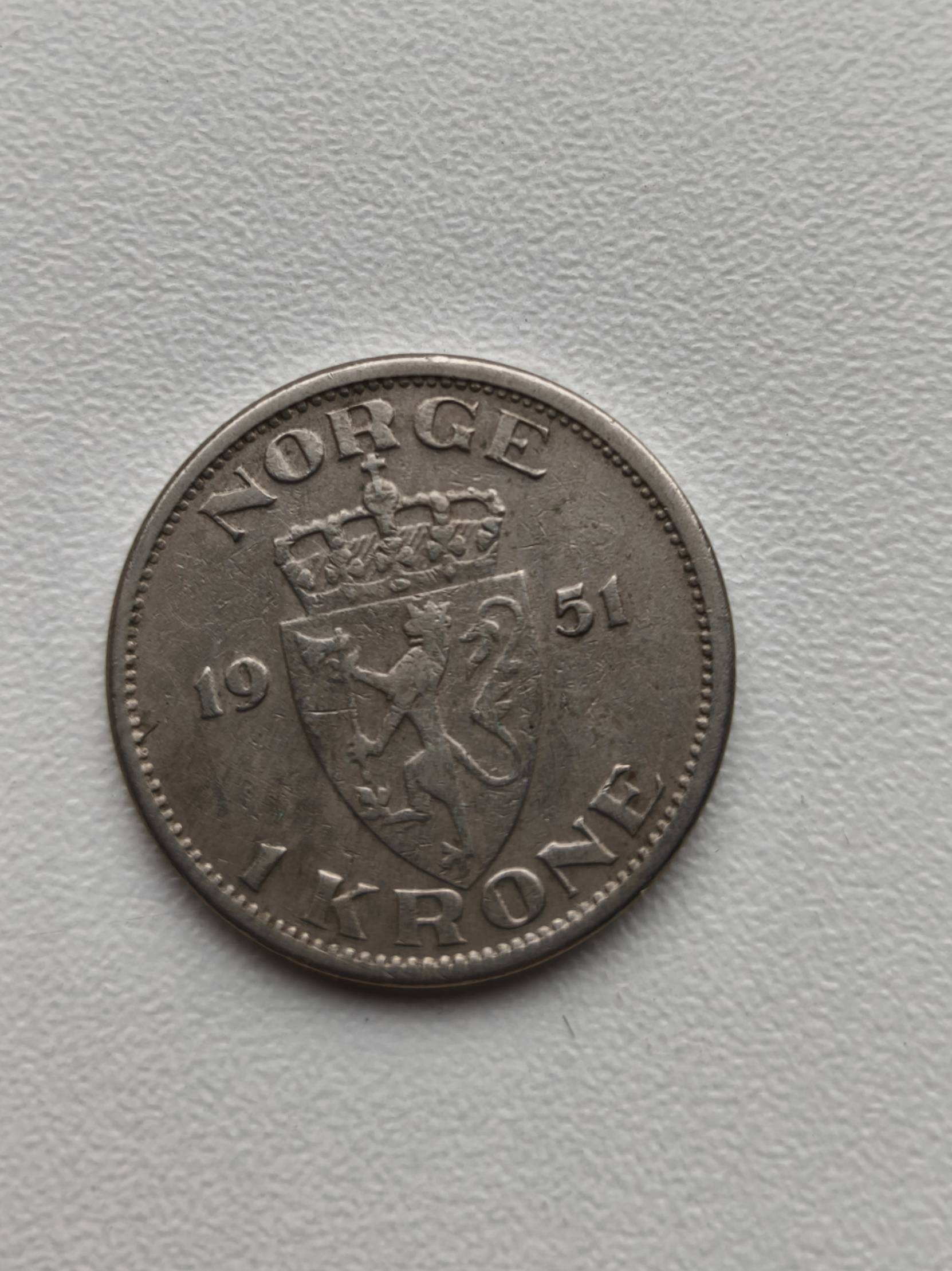 moneta 1951 m. 1 krona Norvegija