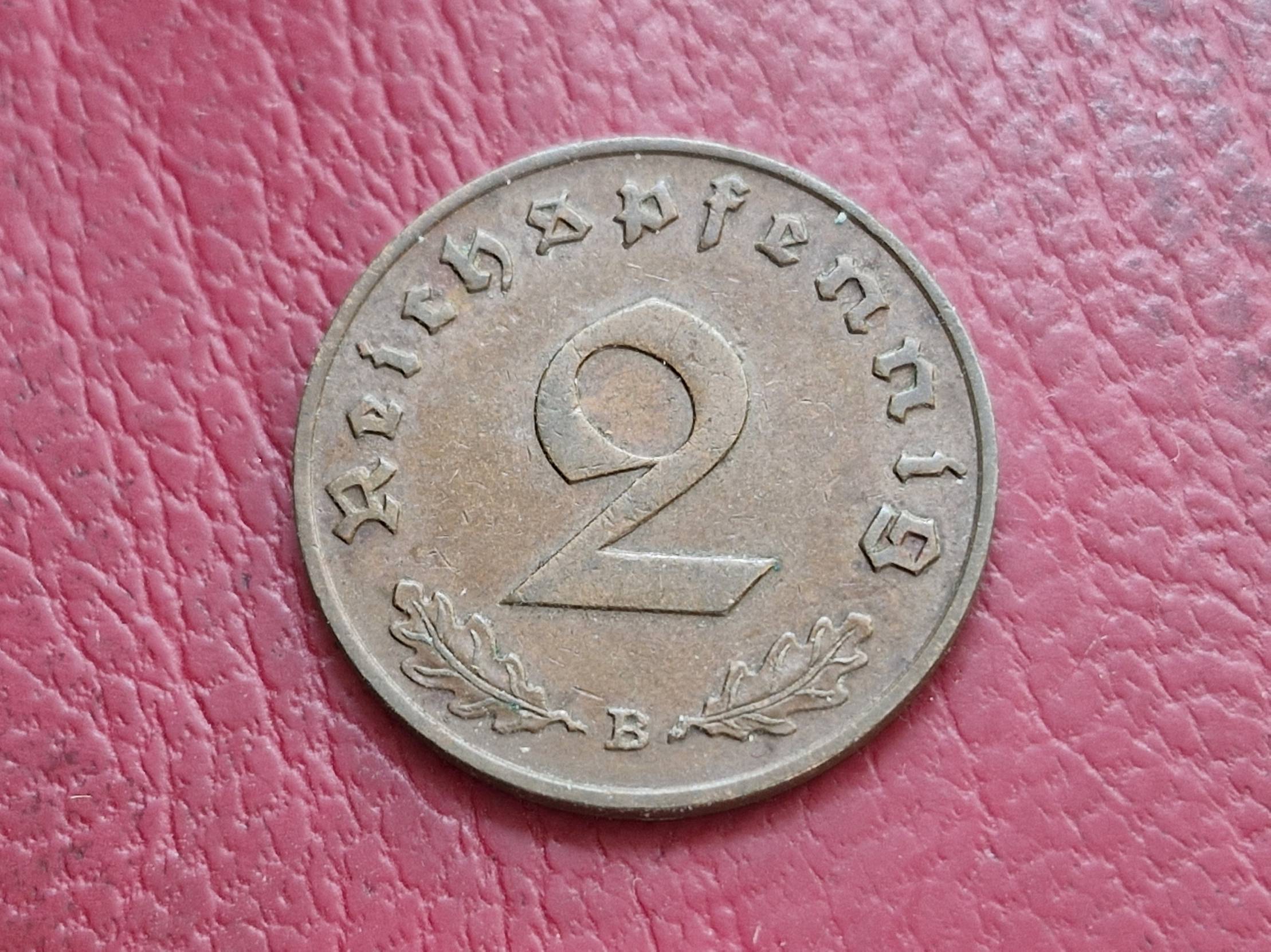 Trečiasis Reichas 2 reichspfenigai, 1939B KM# 90