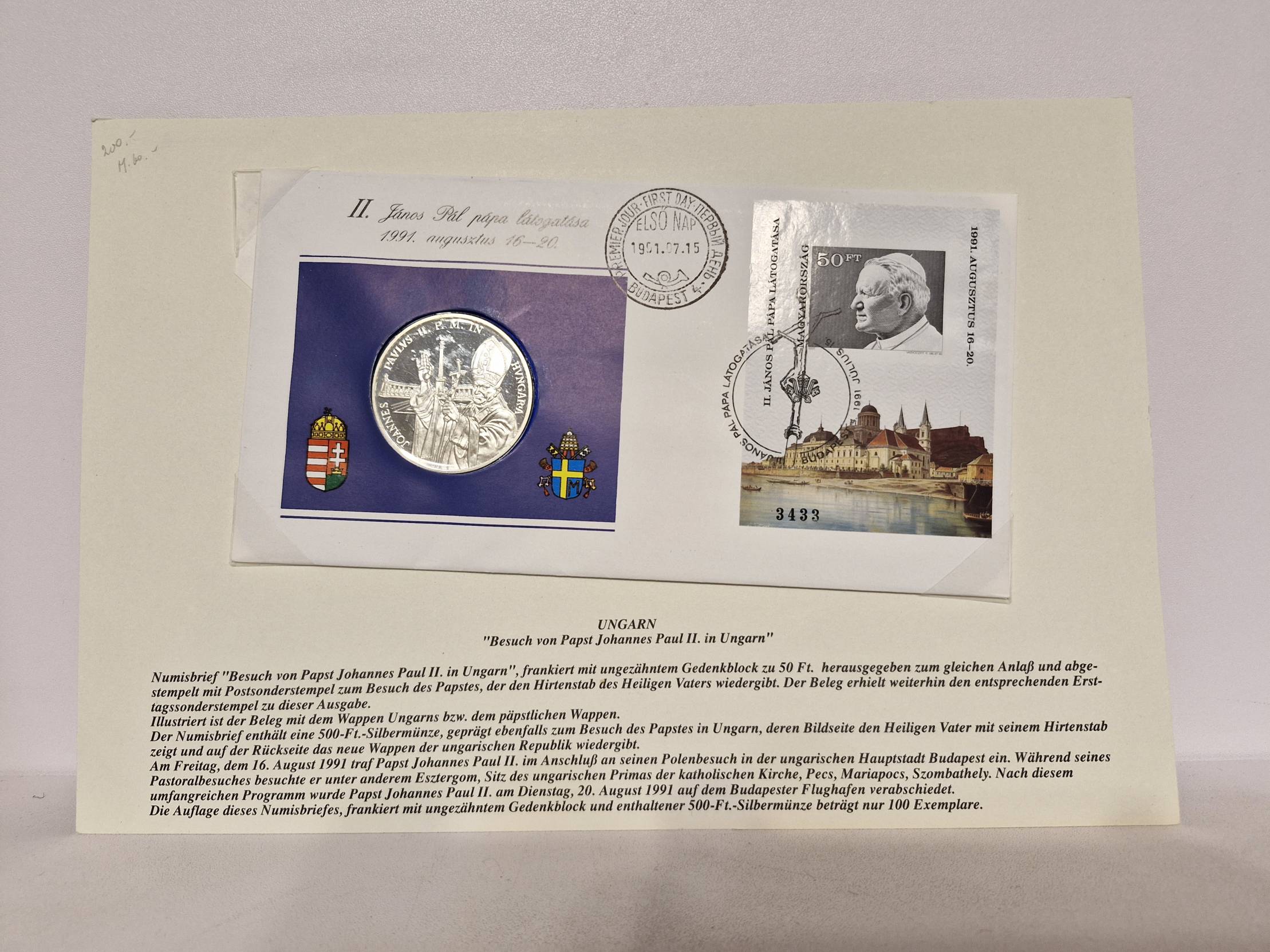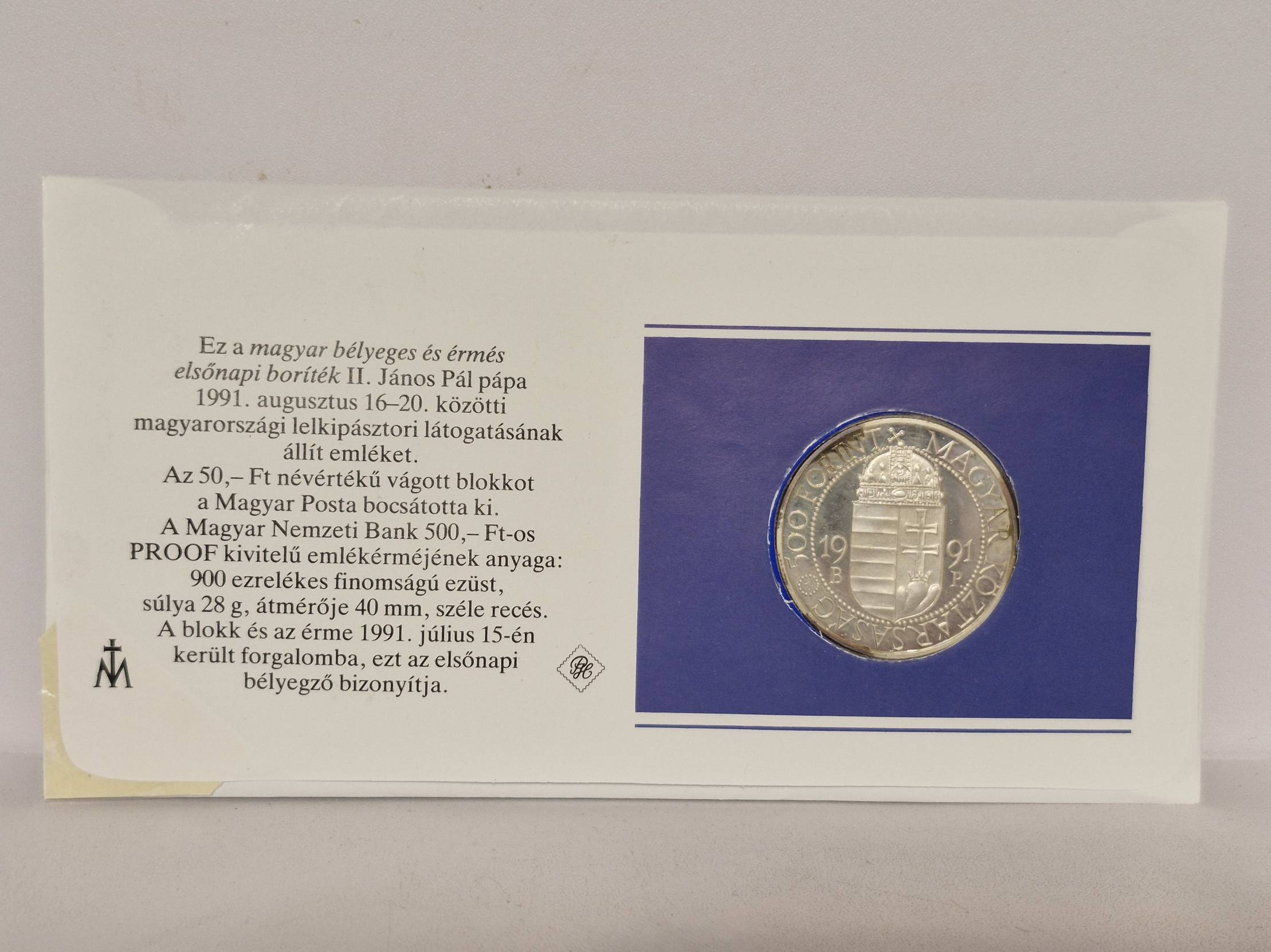 Vengrija 500 forintų, 1991 KM# 683 AG numizm. voke