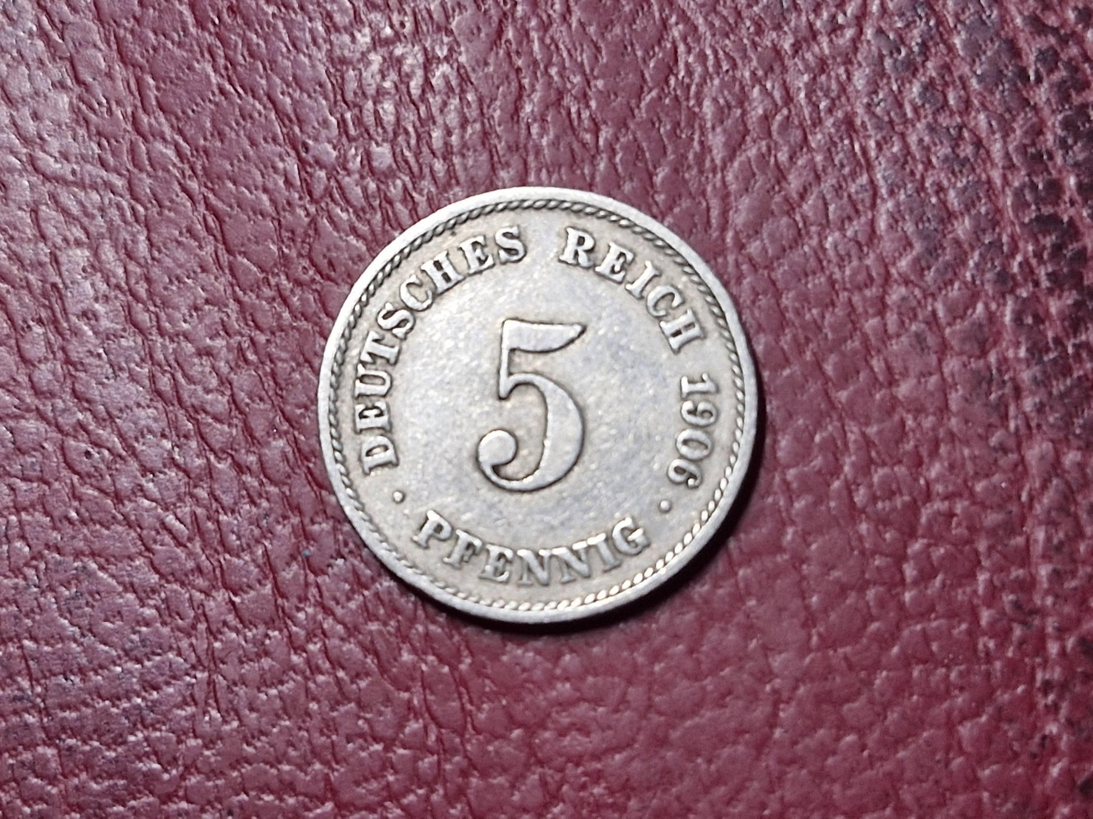1906, Germany, pfennig, 5