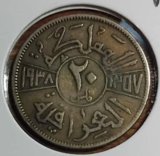 Irakas 20 filsų 1938 m., KM#106, Ag, VF-