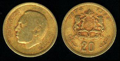 Marokas 20 santimų 1974 m., KM Y#61, Unc