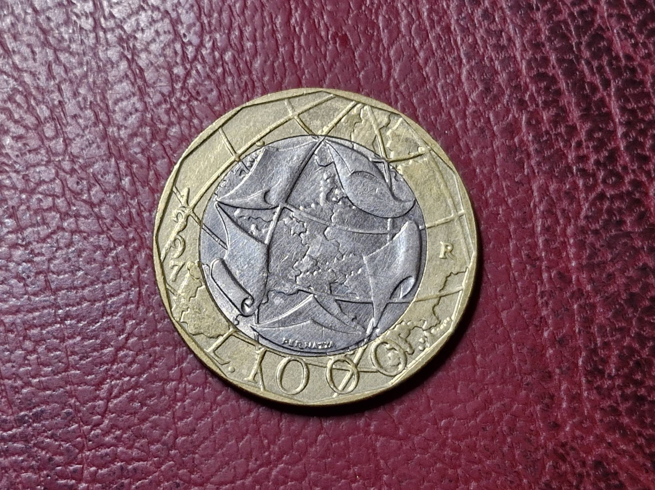 Italija 1000 lirų, 1997 KM# 190 klaida žemėlapyje