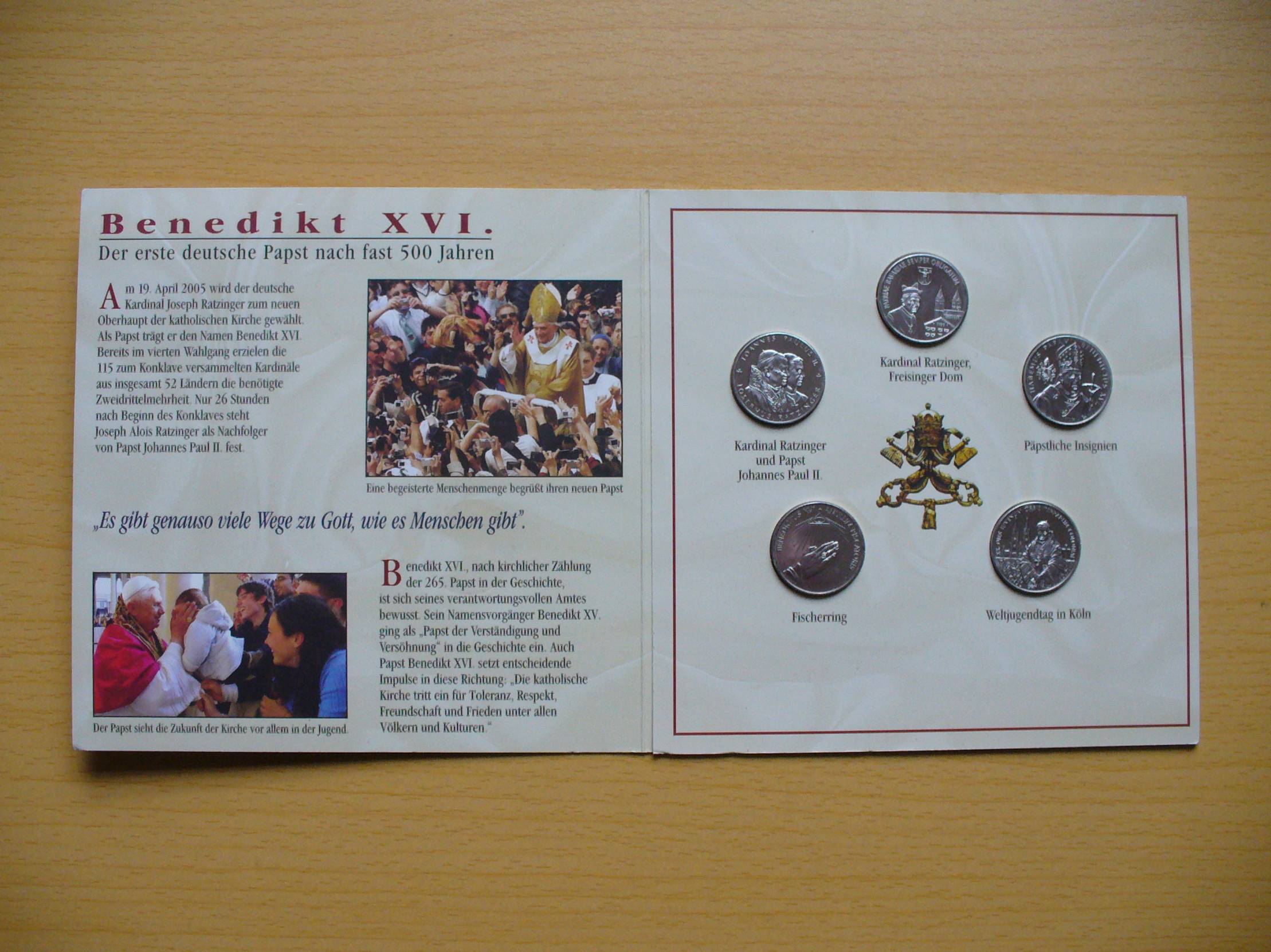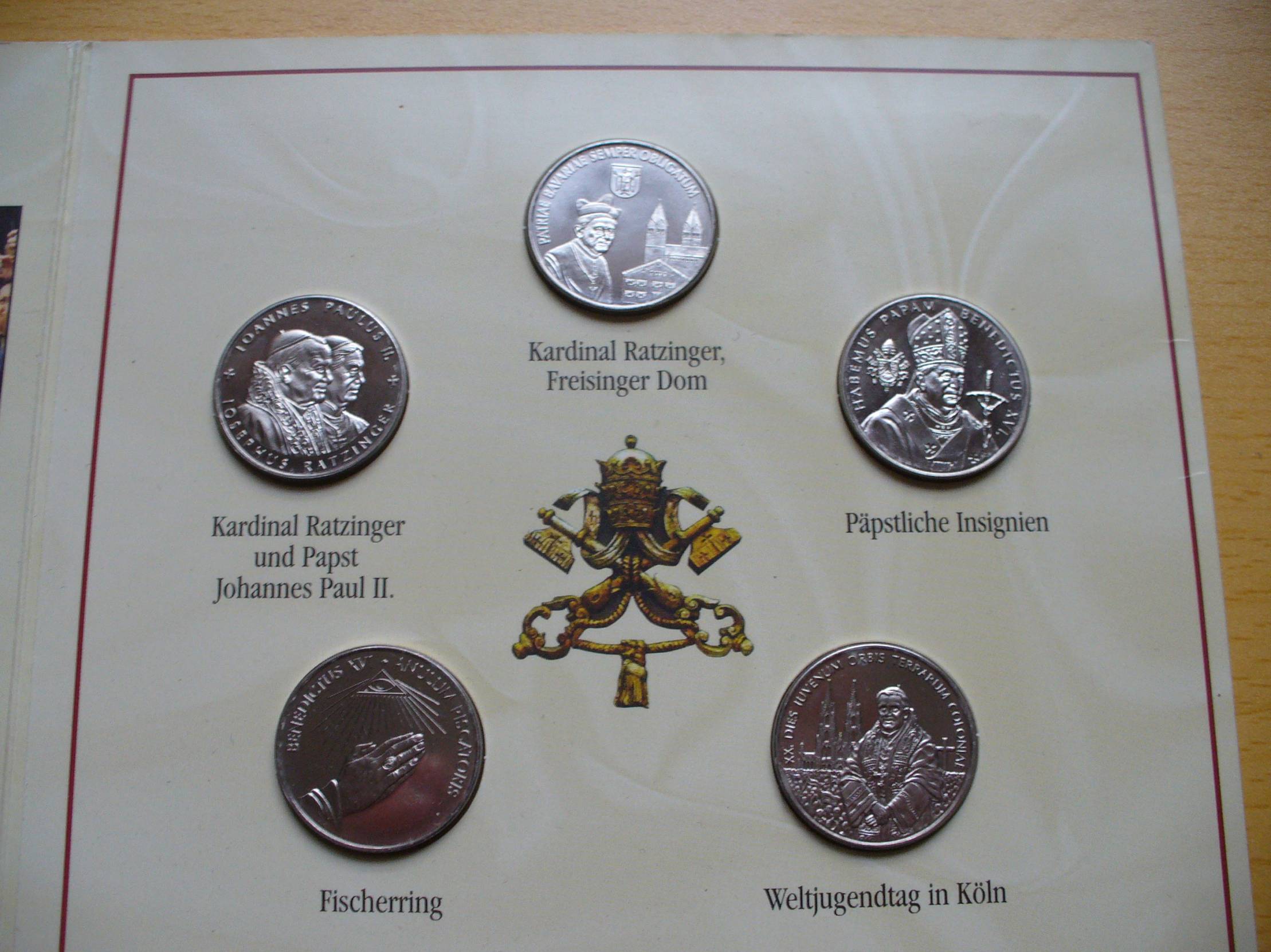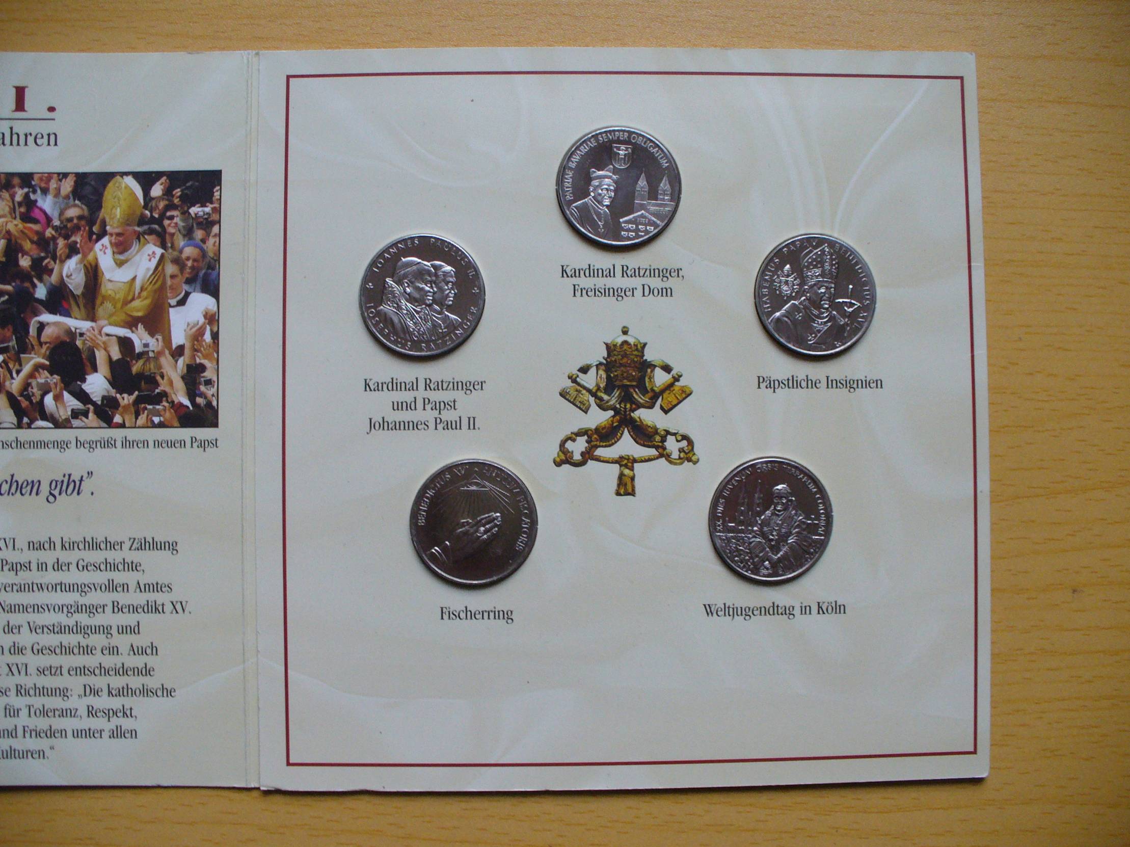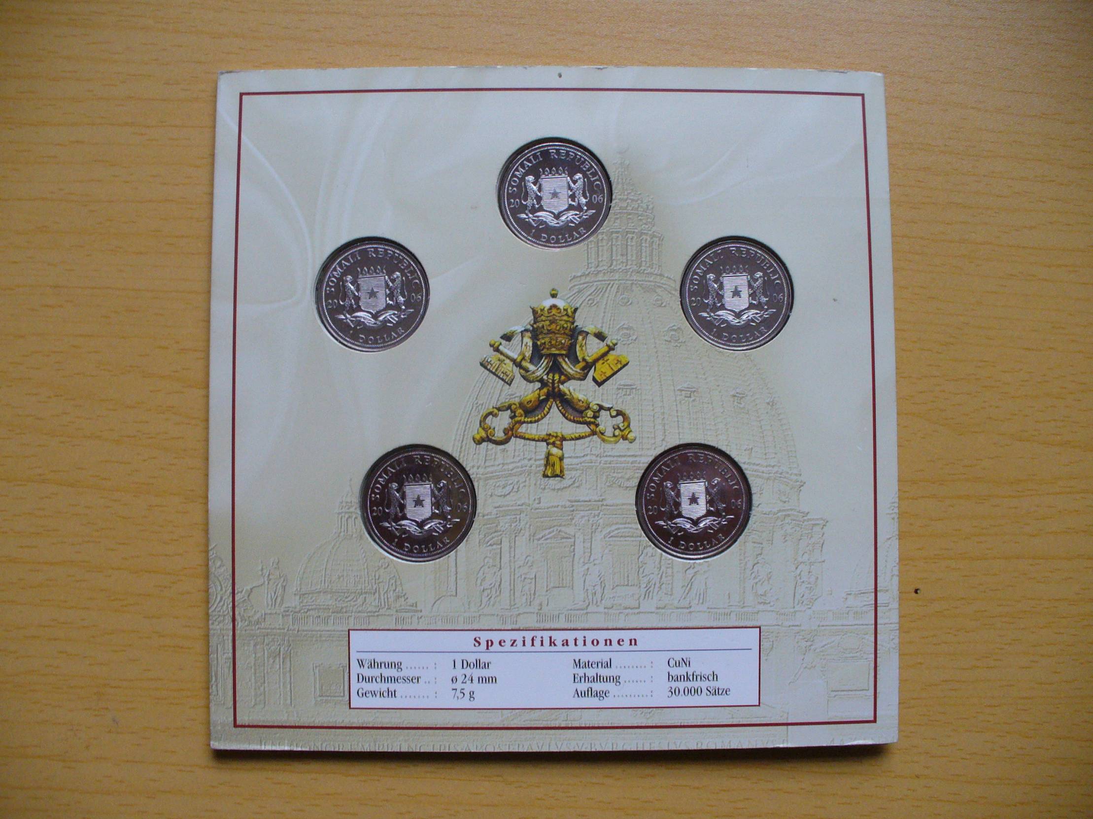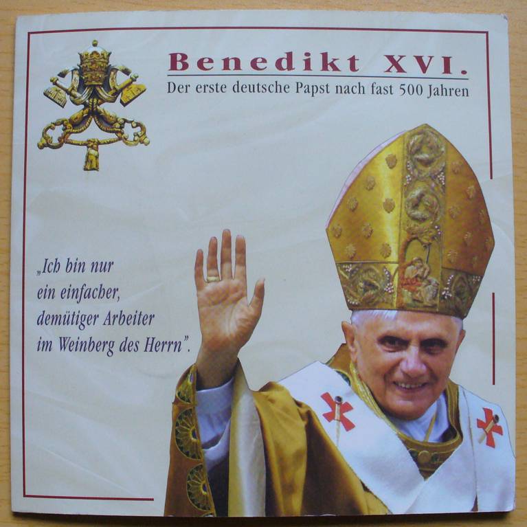 1 doleris, 2006 Pope Benedict XVI. Bavaria 1 doleris, 2006 Popiežius Jonas Paulius II ir Džozefas Ratzingeris 1 doleris, 2006 Pope Benedict XVI. Habemus Papam 1 doleris, 2006 Pope Benedict XVI. Anulum Piscatoris 1 doleris, 2006 Pope Benedict XVI. World Youth Day in Cologne