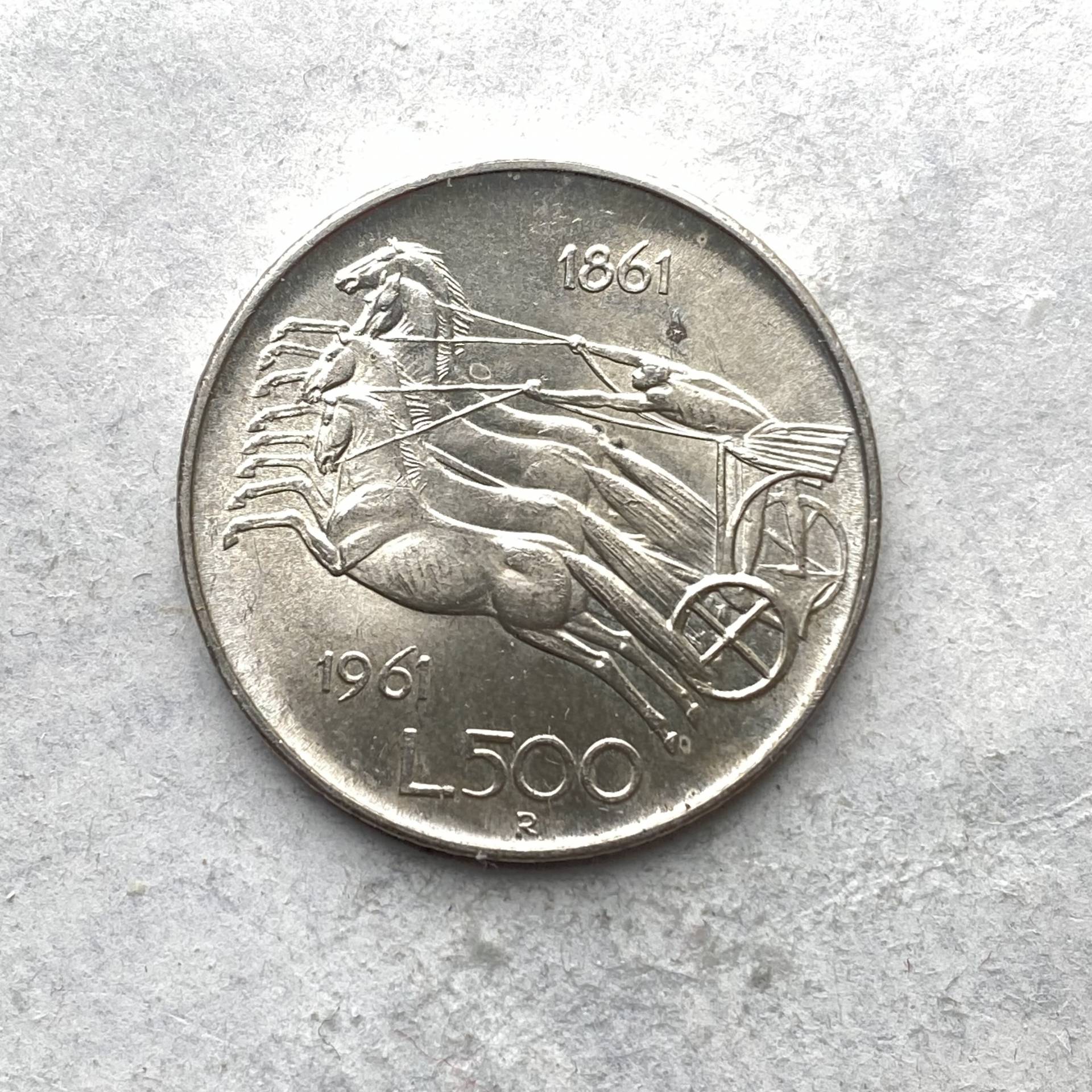 1961 R Italy silver pinigas 500 Lire/D10