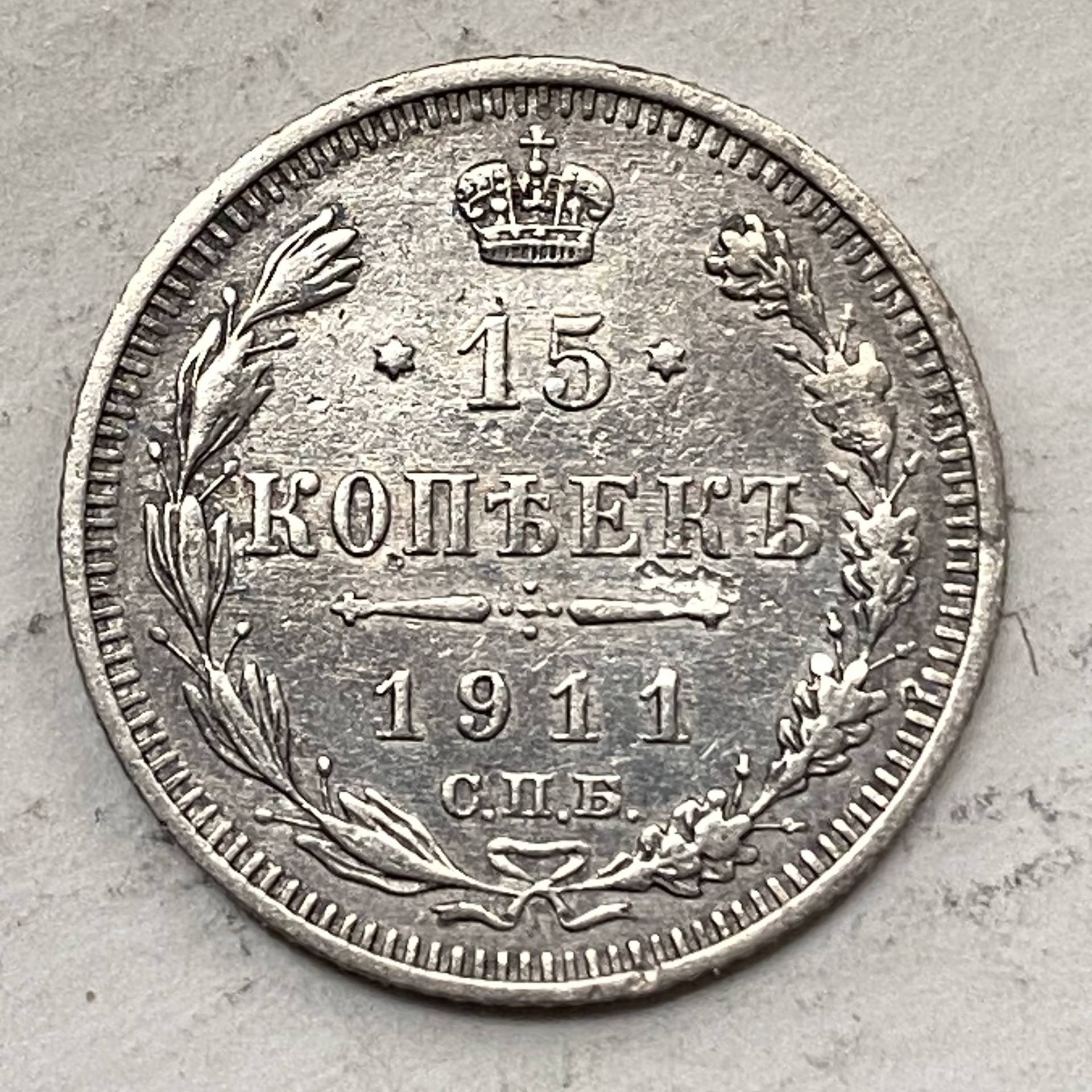 1911 Russia sidabro pinigas 15 kopeks/D10