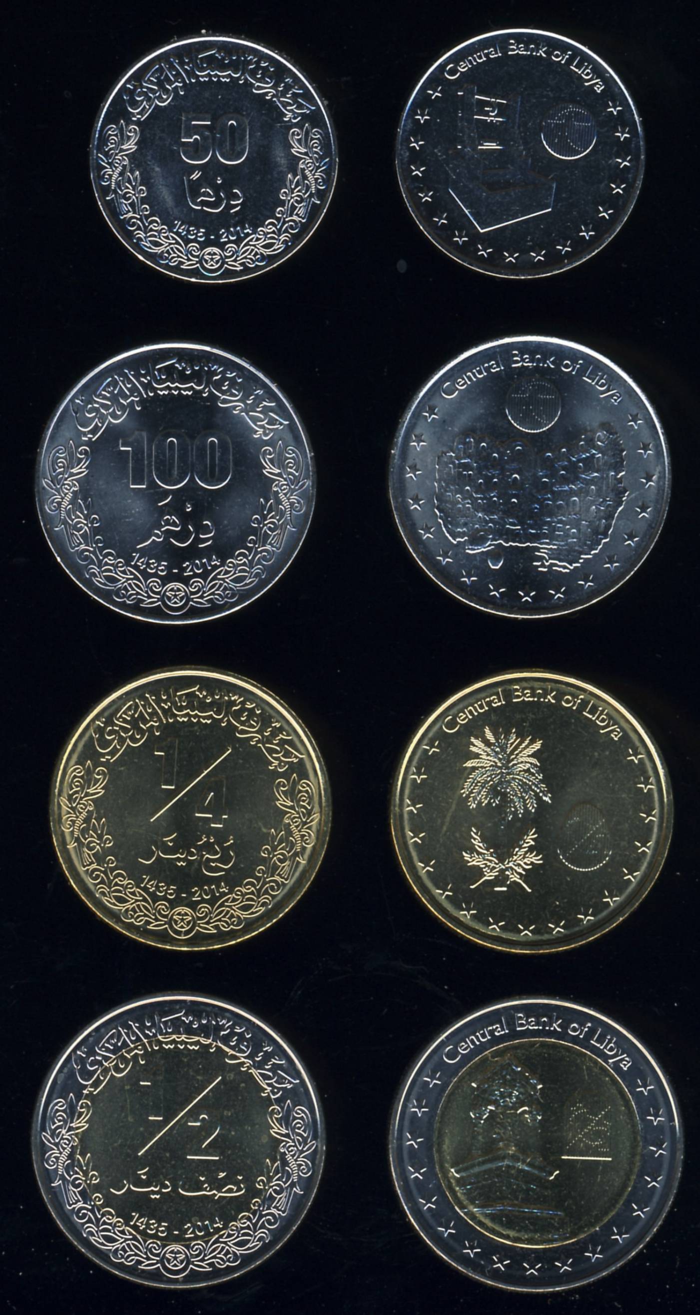 50, 100 Dirhams; ¼, ½ Dinar