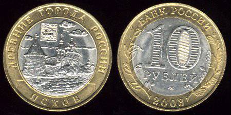 Rusija 10 rublių 2003 SP, Pskov, KM Y#800, AUnc
