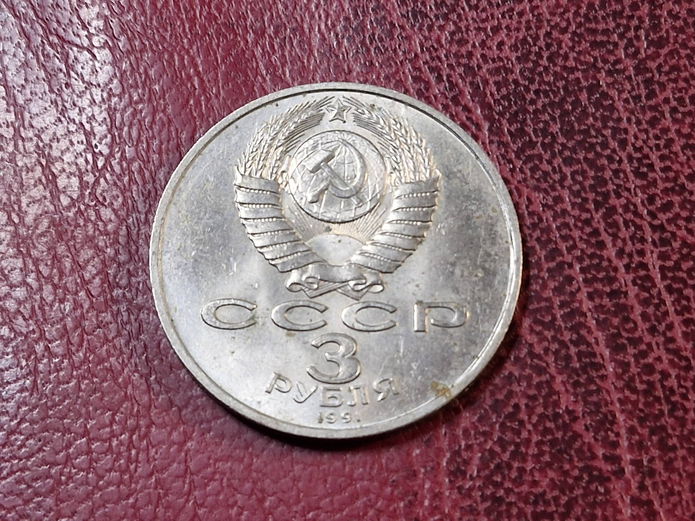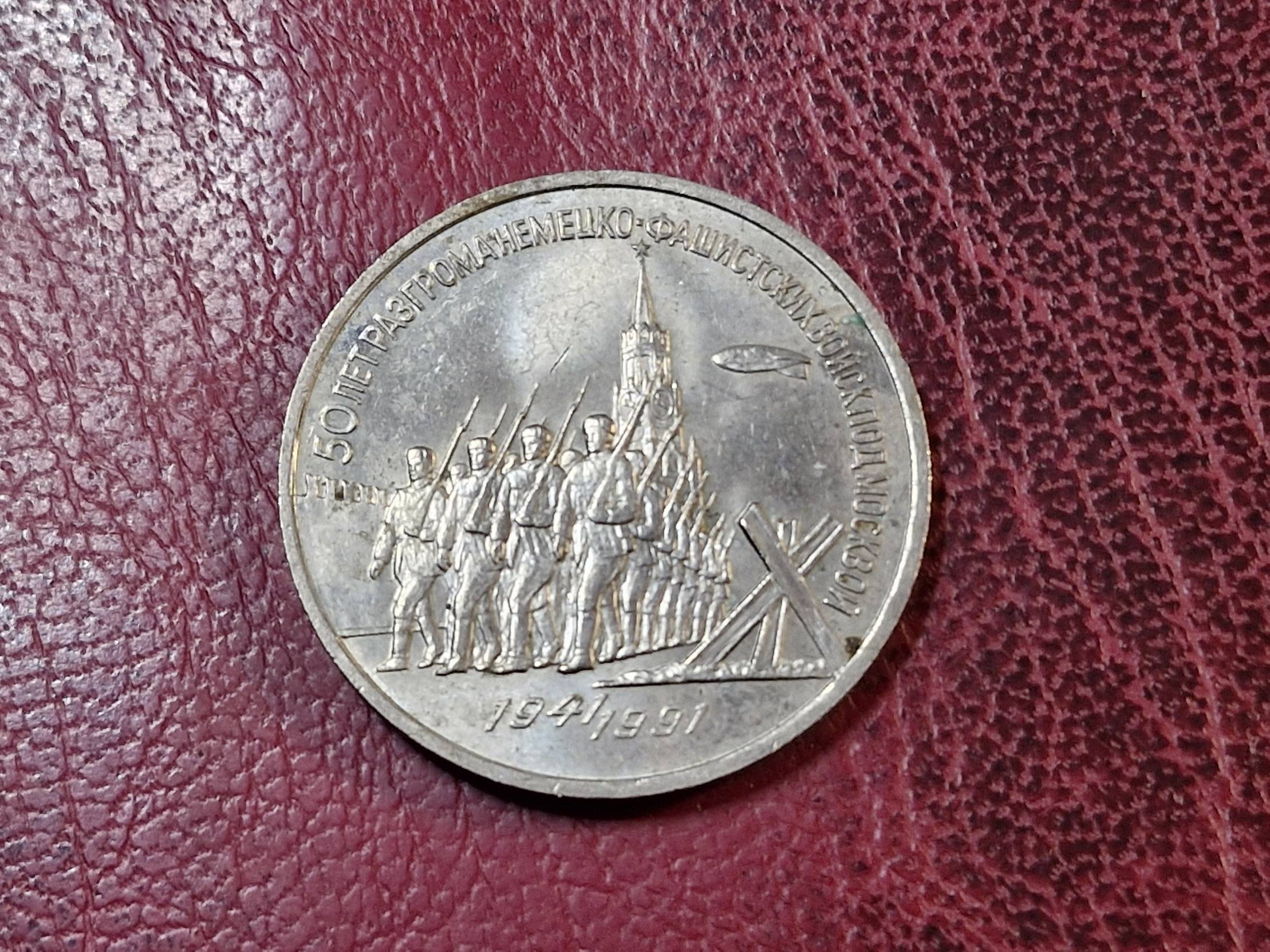 SSRS 3 rubliai, 1991 Y# 301 50 metų pergalei