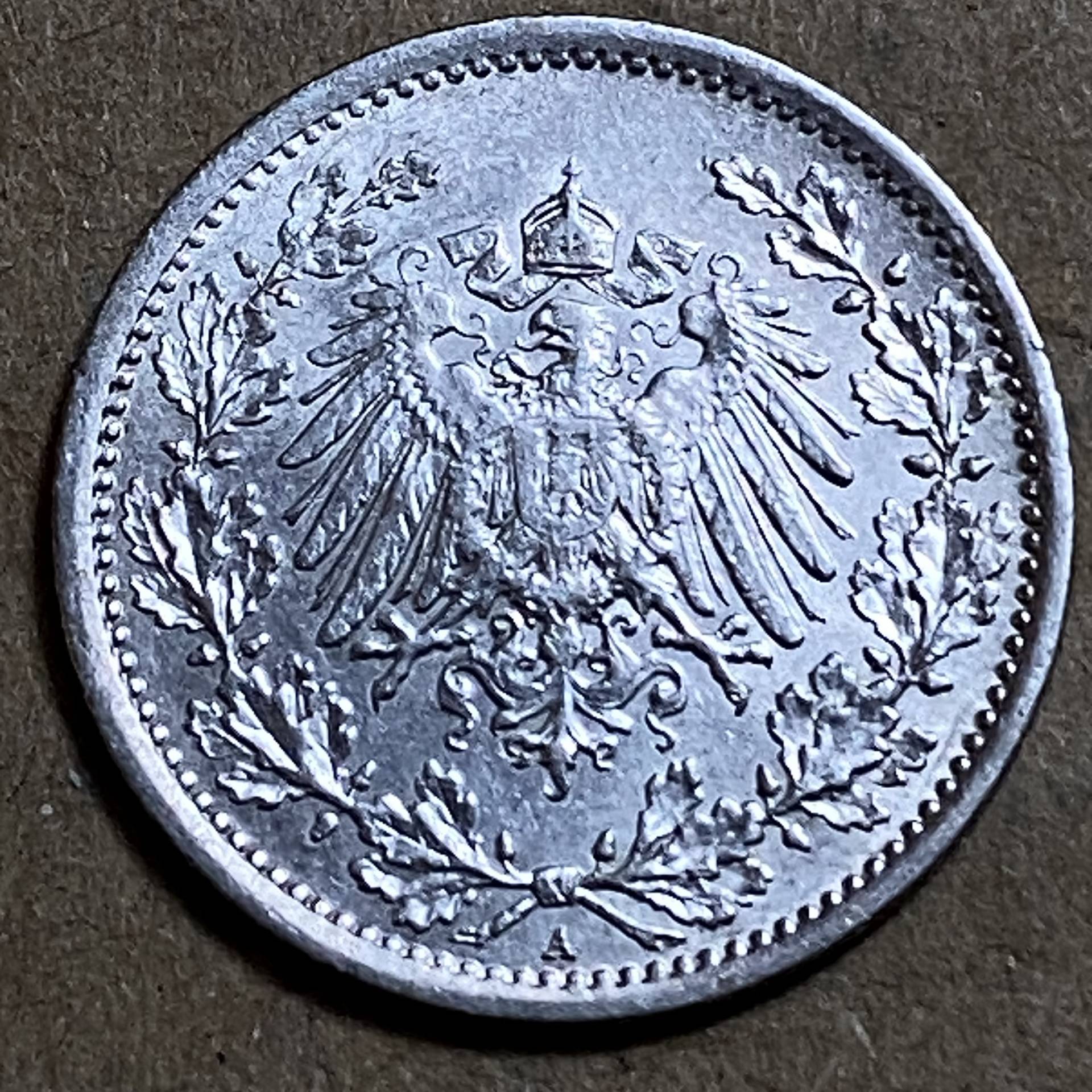 1915 A Germany silver pinigas 1/2 Mark/D10