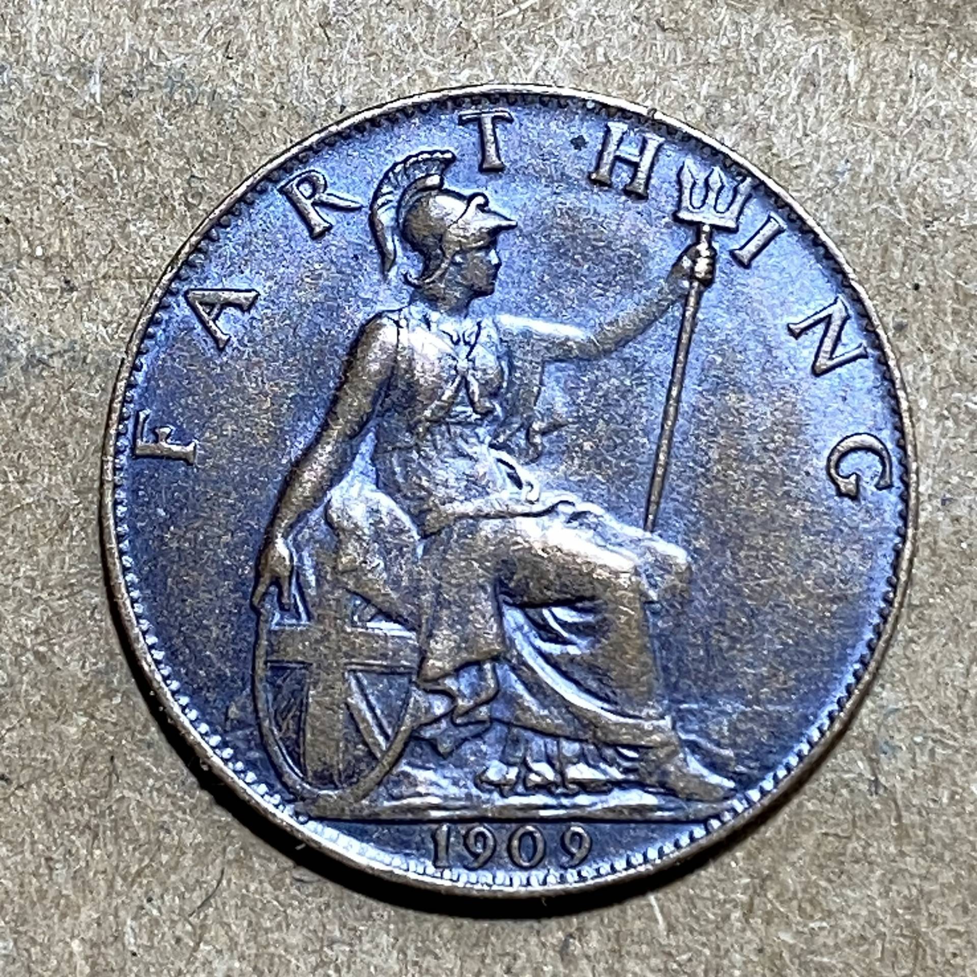 1909 UK Bronze pinigas Farthing/E11