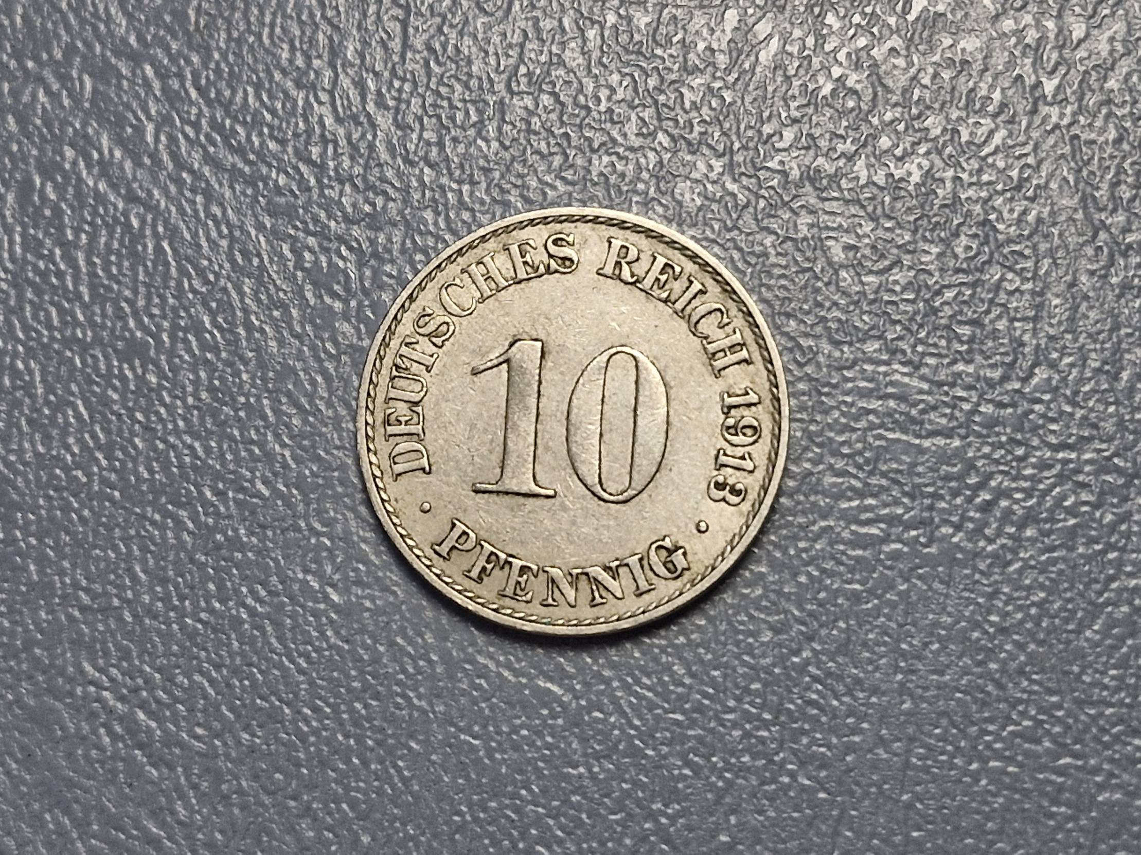 1913, Germany, pfennig, 10
