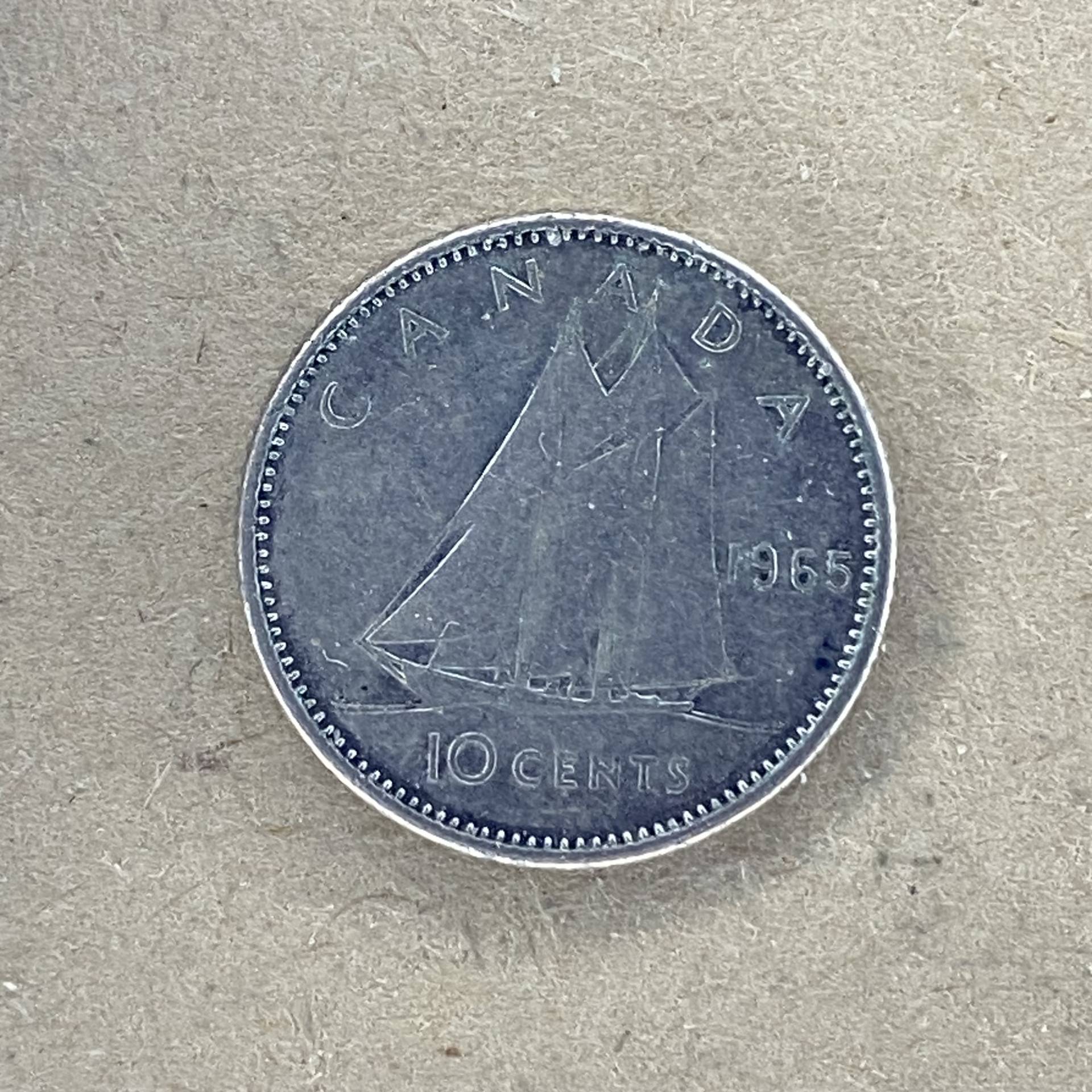 1965 Canada silver pinigas 10 cents/D10