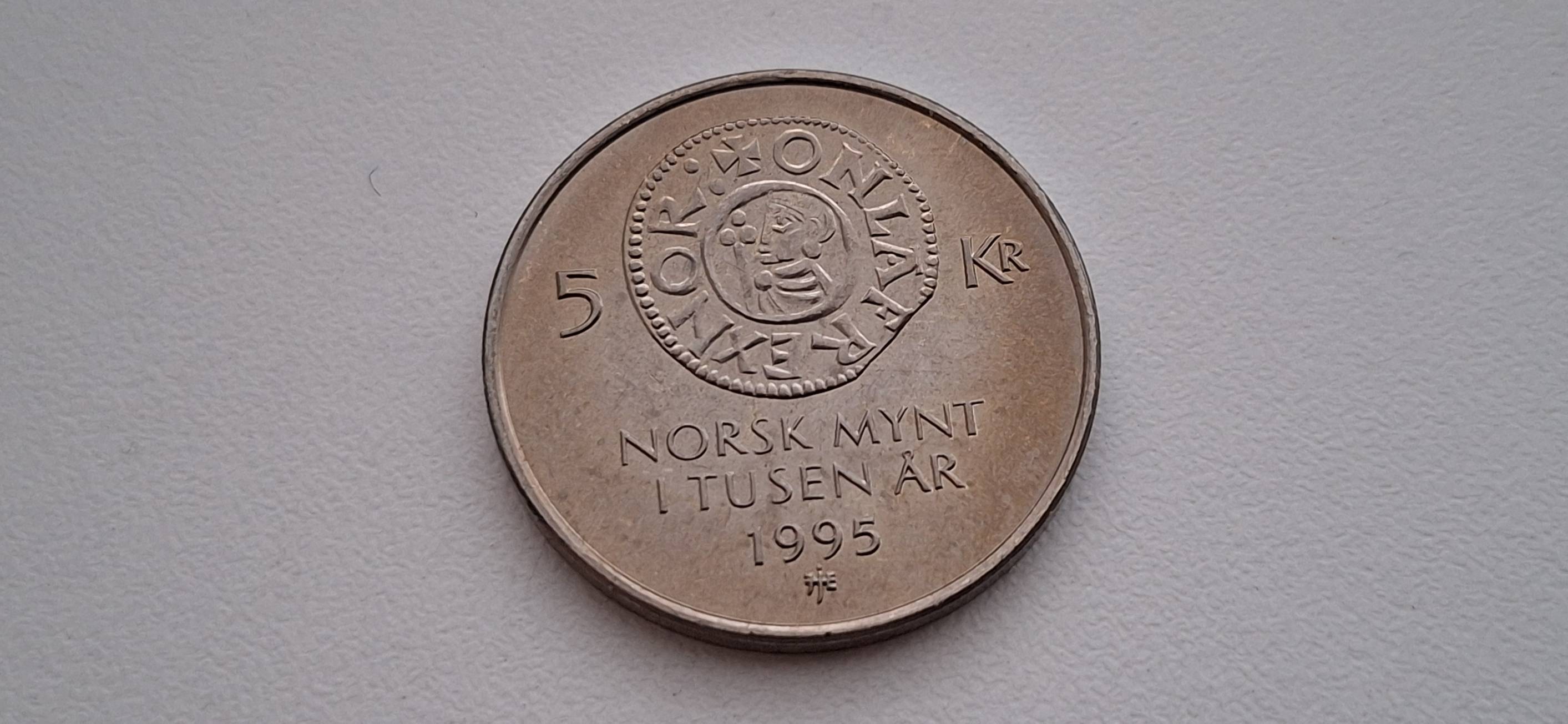 Norvegija 5 kronos 1995 Norvegijos monetoms 1000