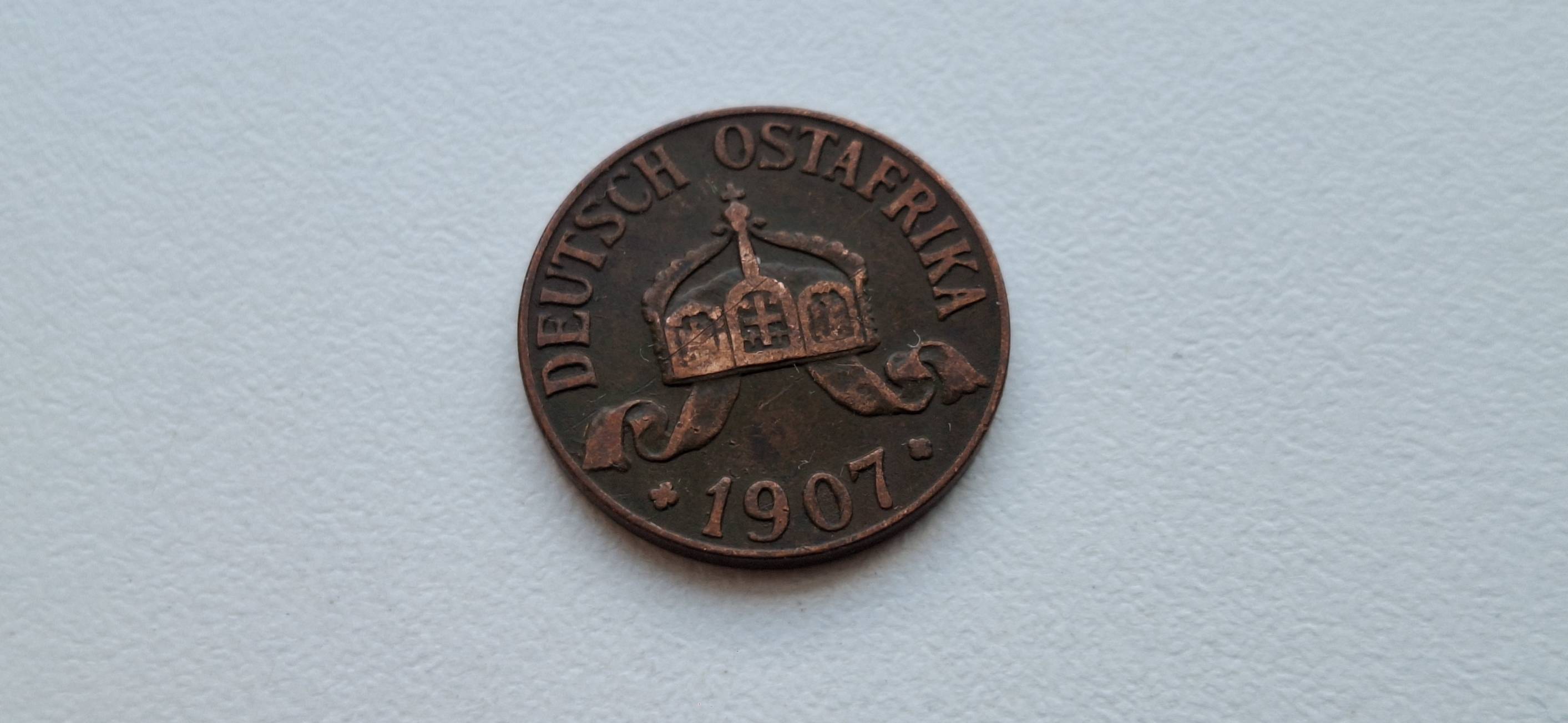 Vokietijos Rytų Afrika 1 heleris 1907 J