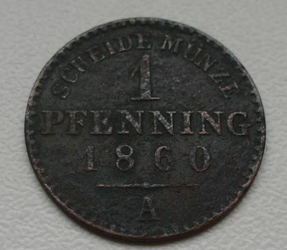 Prūsija 1860 1 PFENNIG..........3286