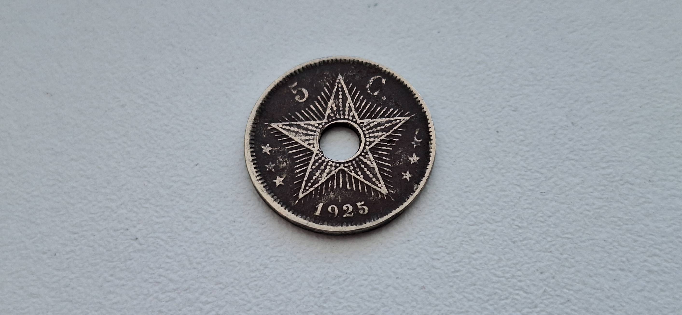 Belgijos Kongas 5 santimai 1925