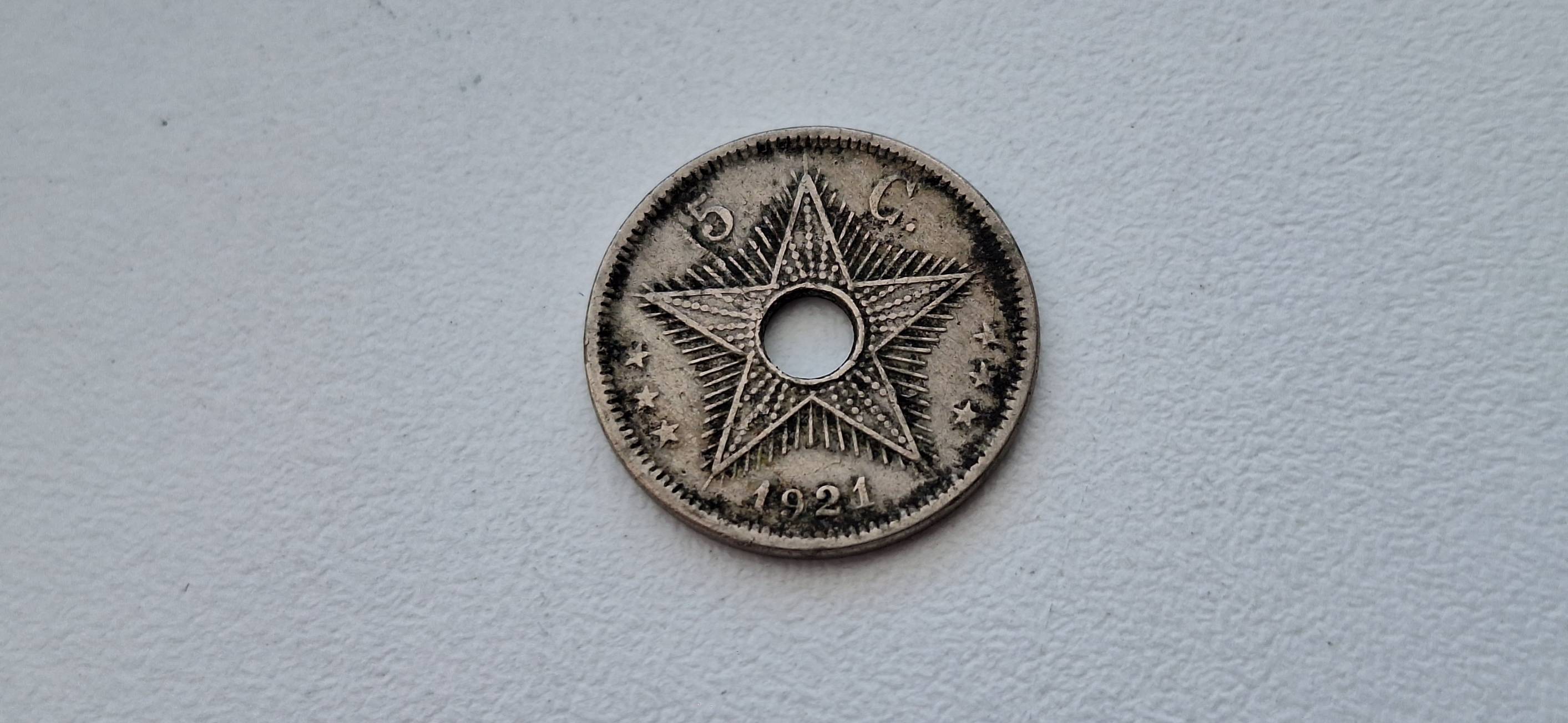 Belgijos Kongas 5 santimai 1921