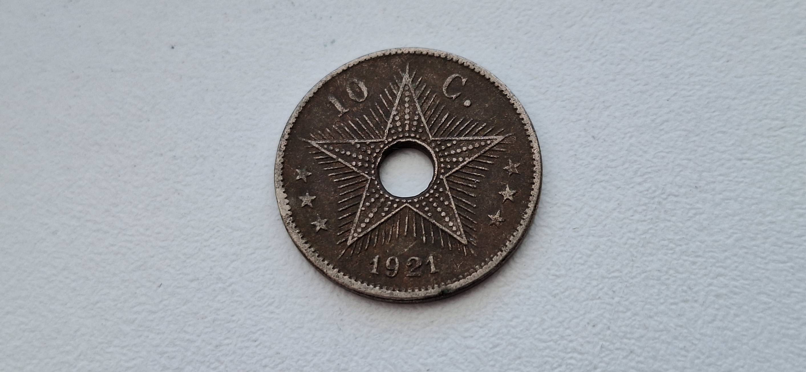 Belgijos Kongas 10 santimų 1921