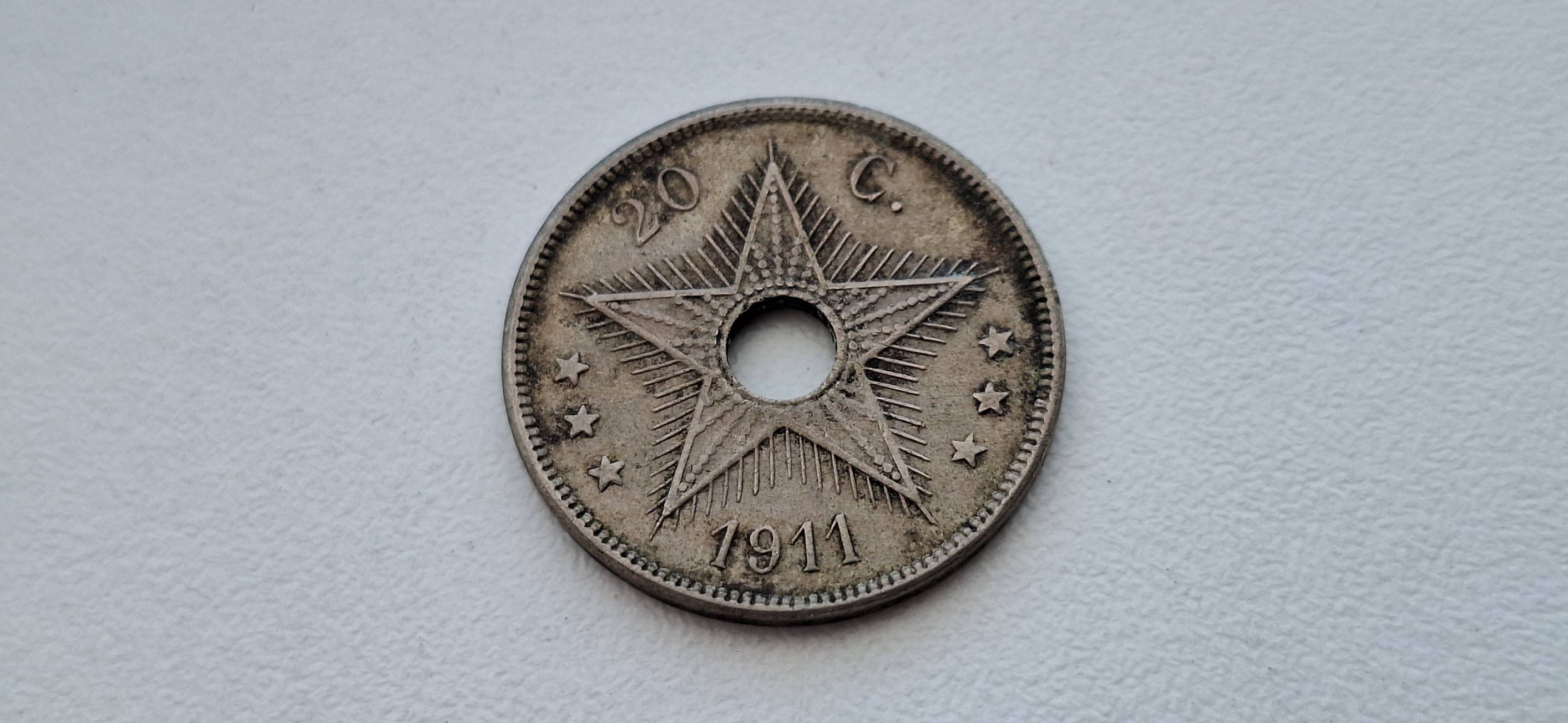 Belgijos Kongas 20 santimų 1911