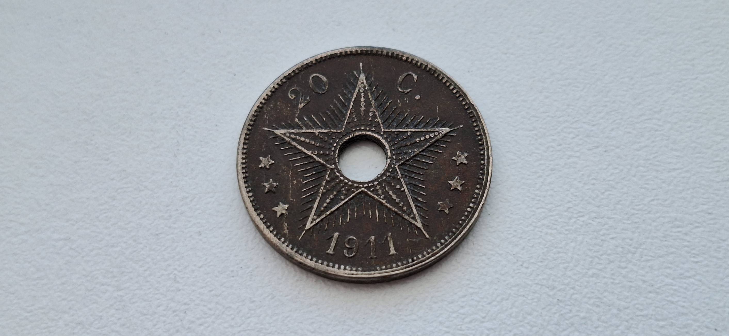 Belgijos Kongas 20 santimų 1911