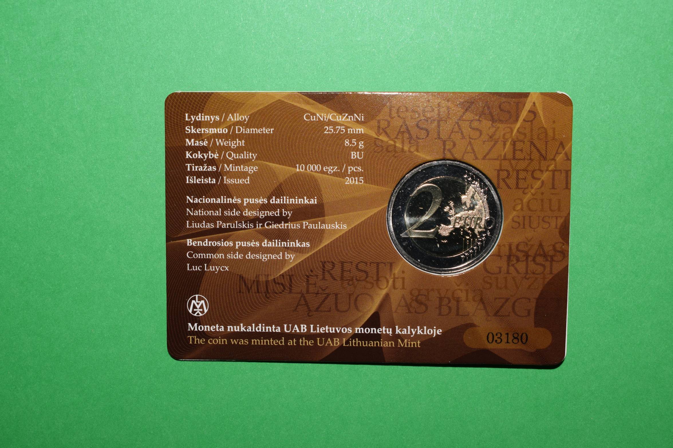 2015 LITHUANIA coincard 2 Euru