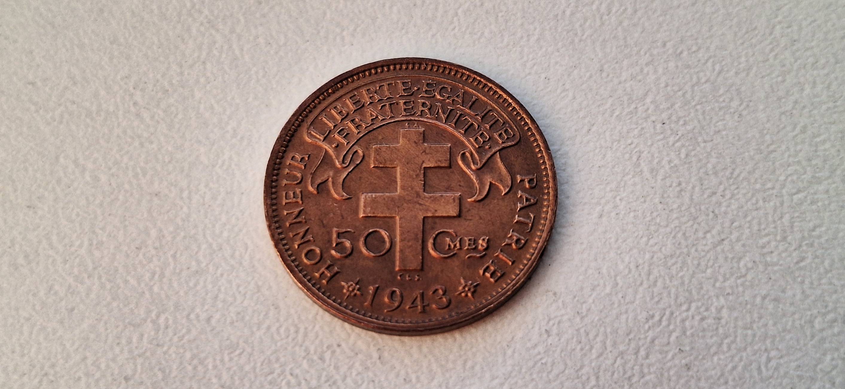 Prancūzijos Pusiaujo Afrika 50 santimų 1943