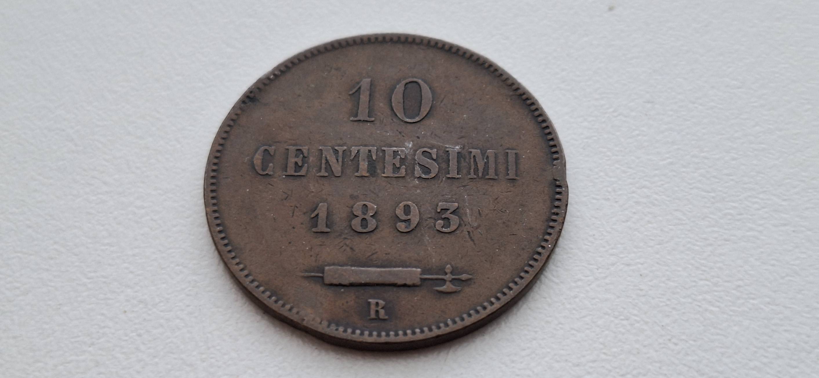 San Marinas 10 čentezimų 1893