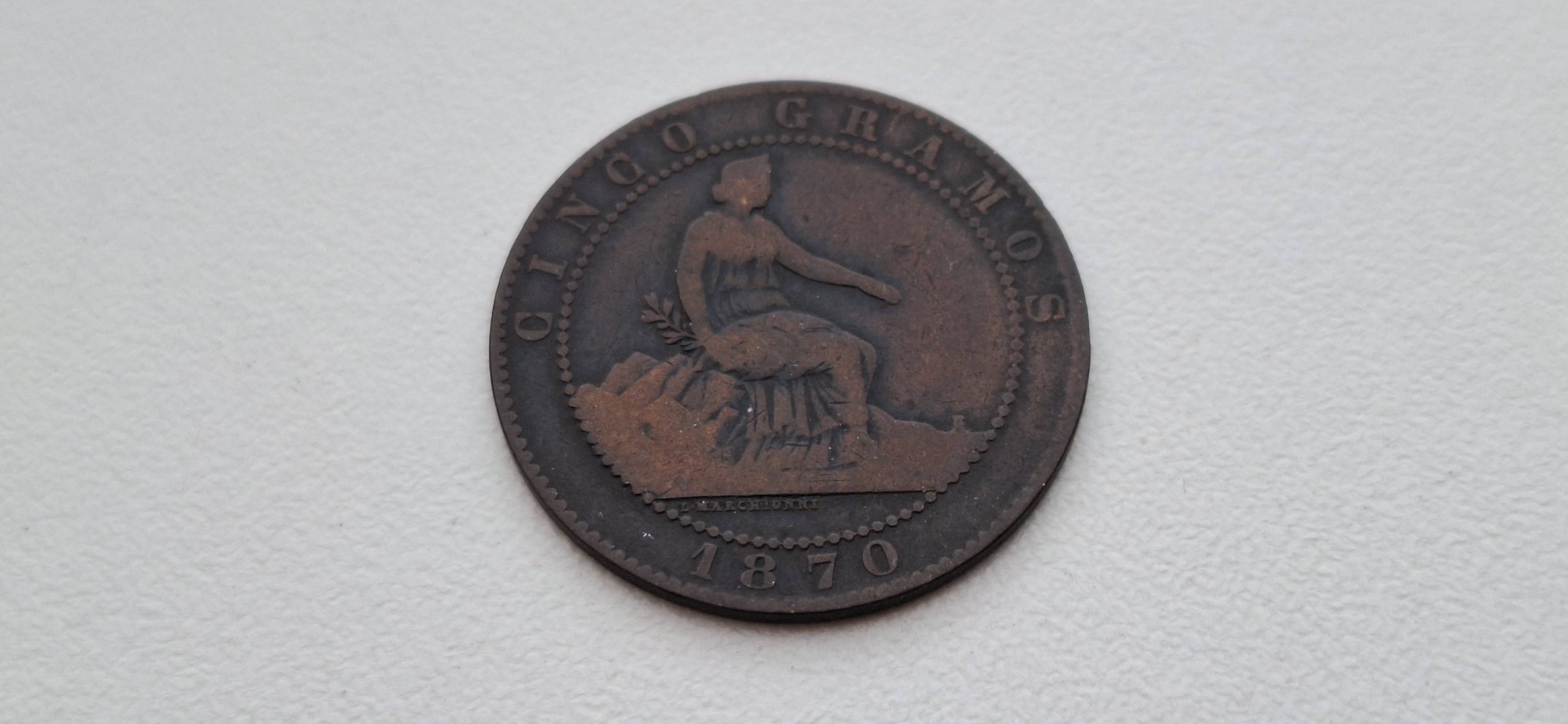 Ispanija 5 sentimai 1870