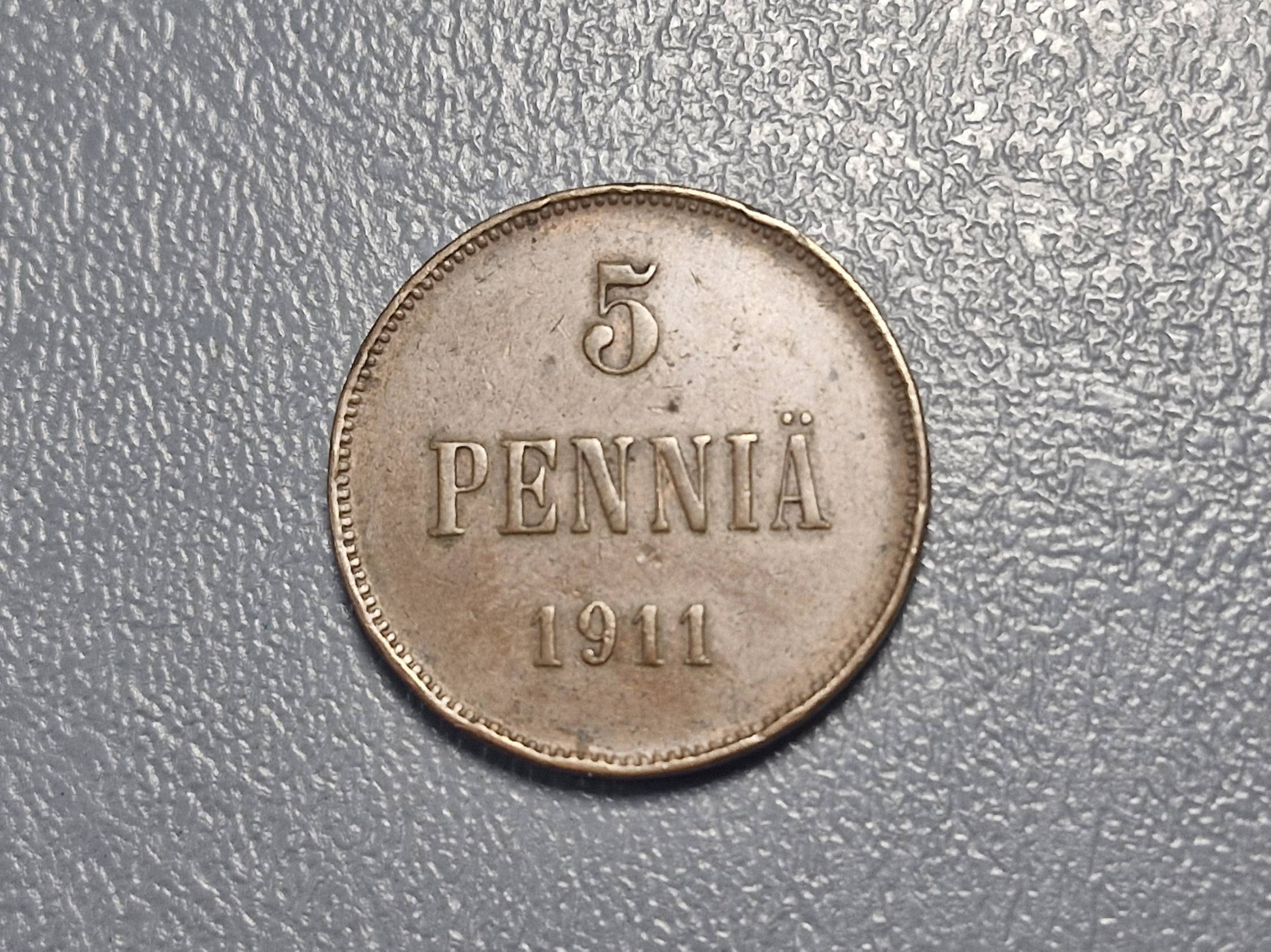1911, Finland, pennia, 5
