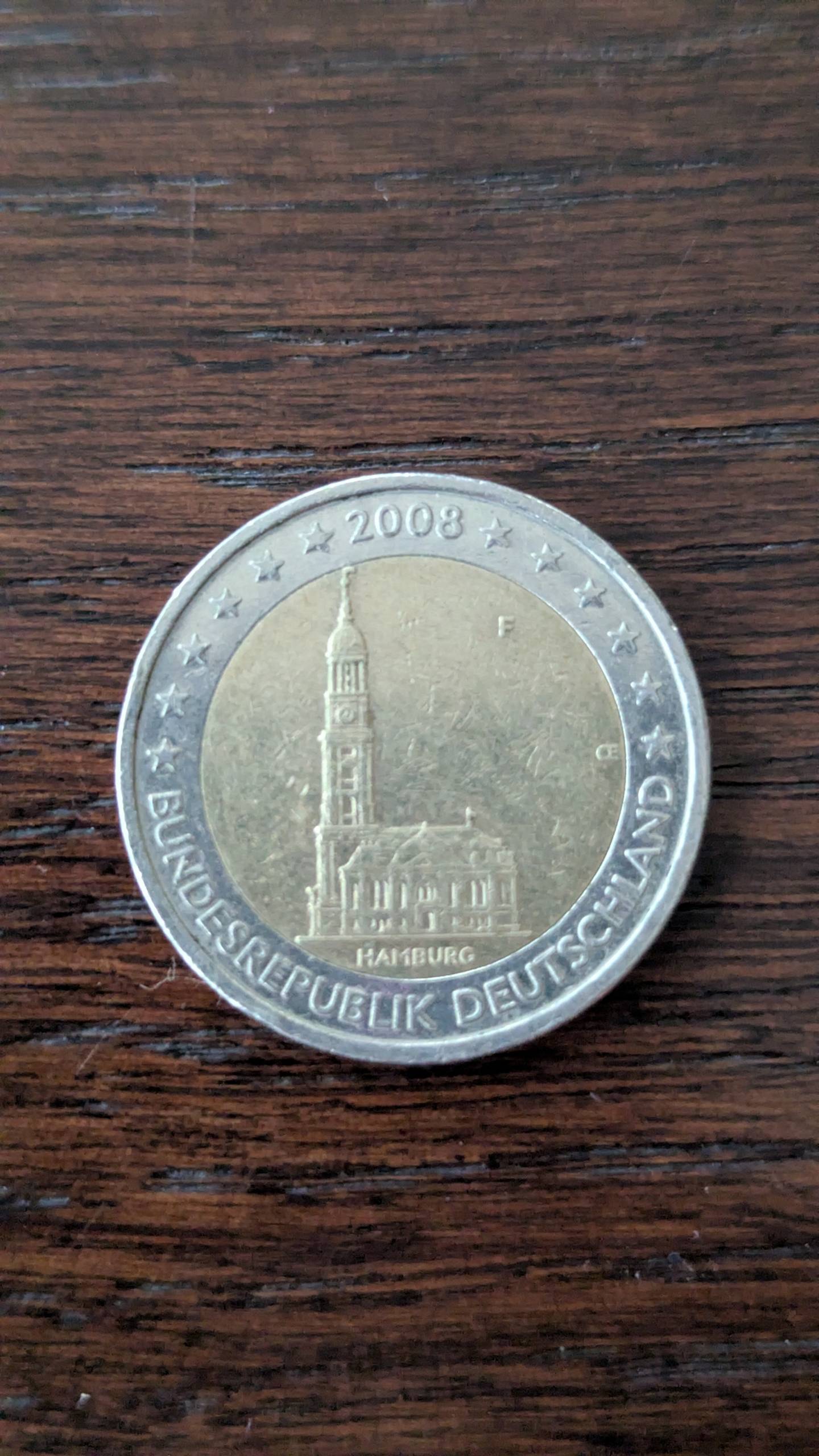 Vokietija 2 eurai F 2008 Hamburg