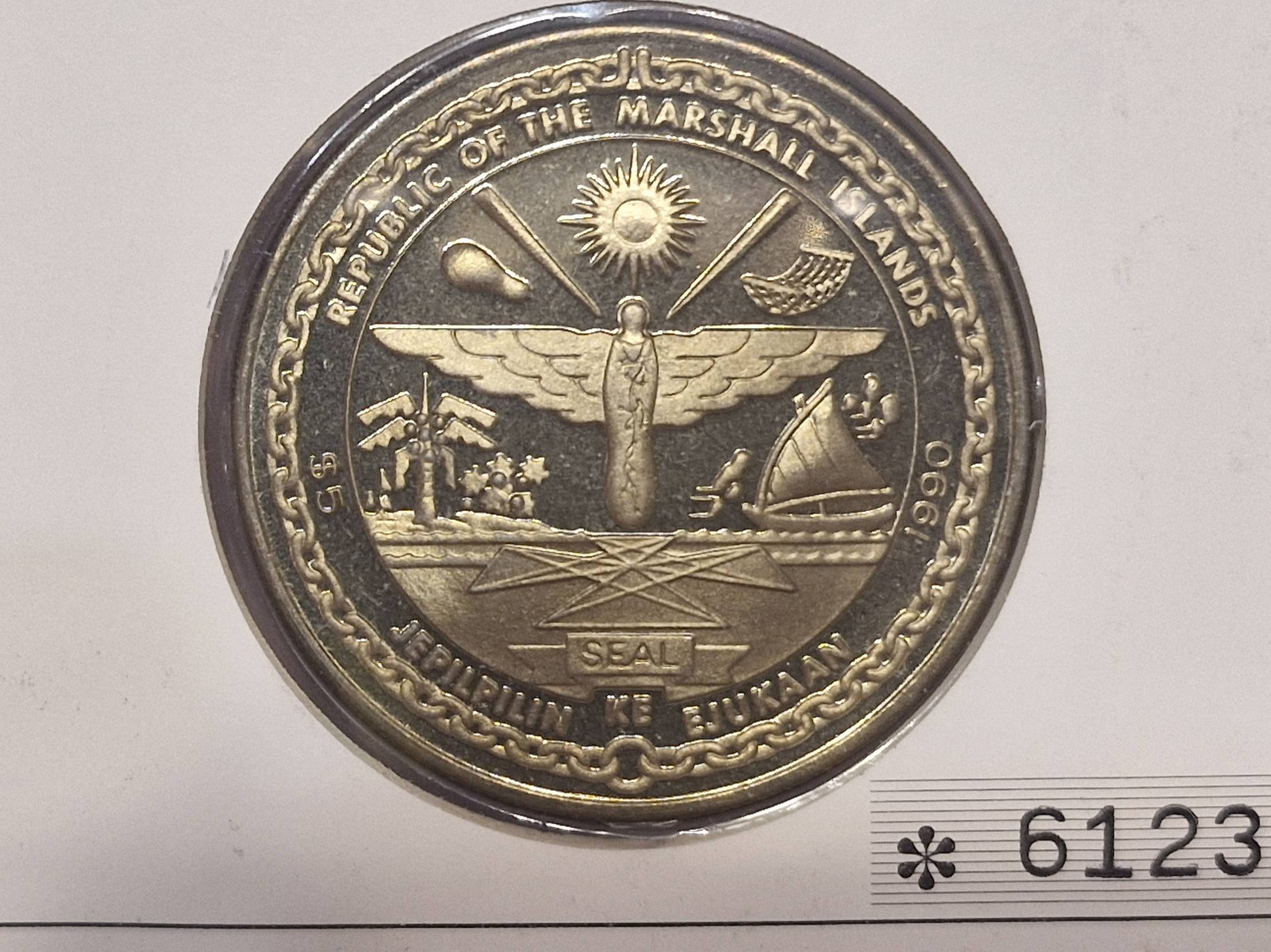 1990, Marshall Islands, dollar, 5
