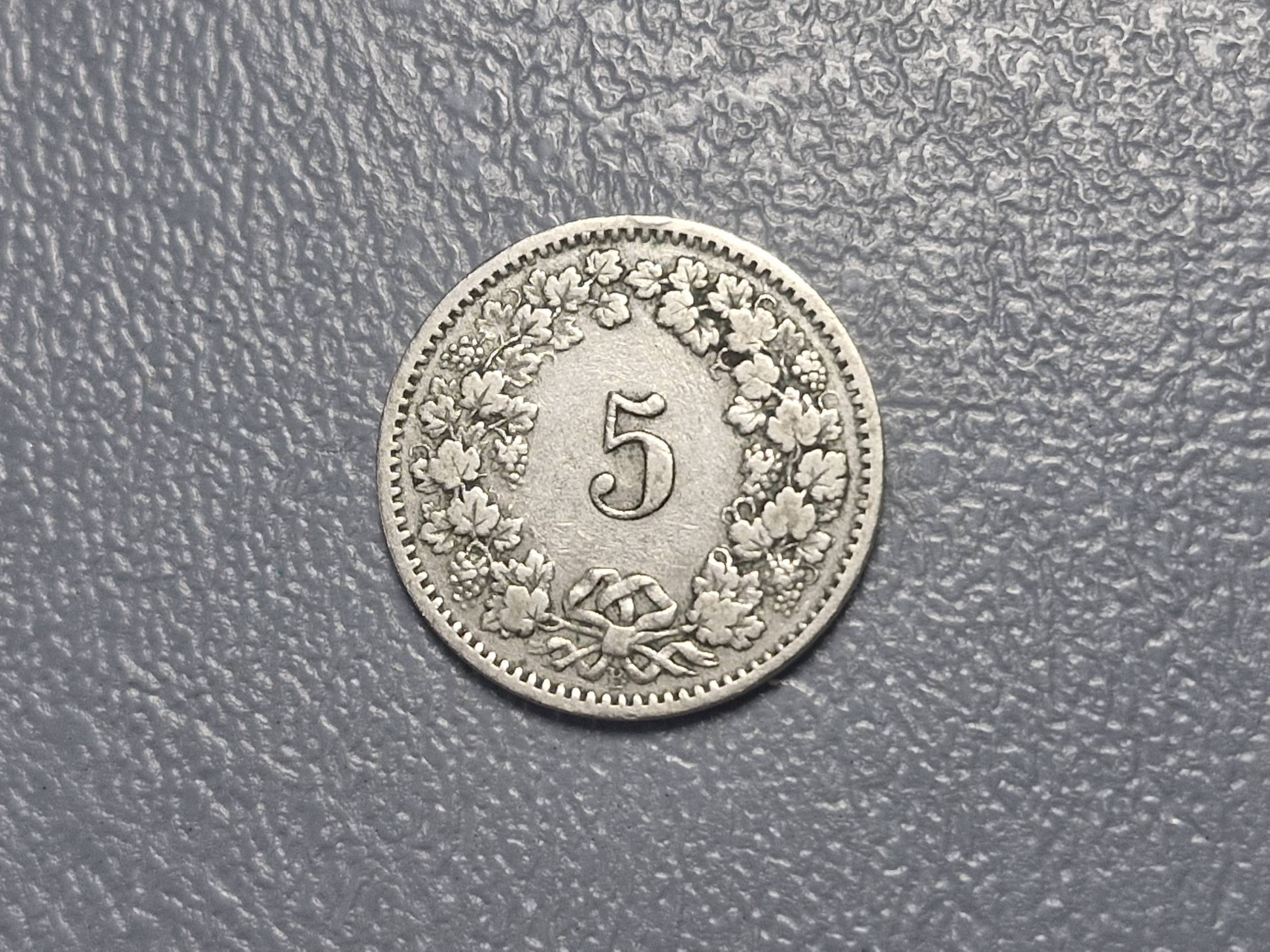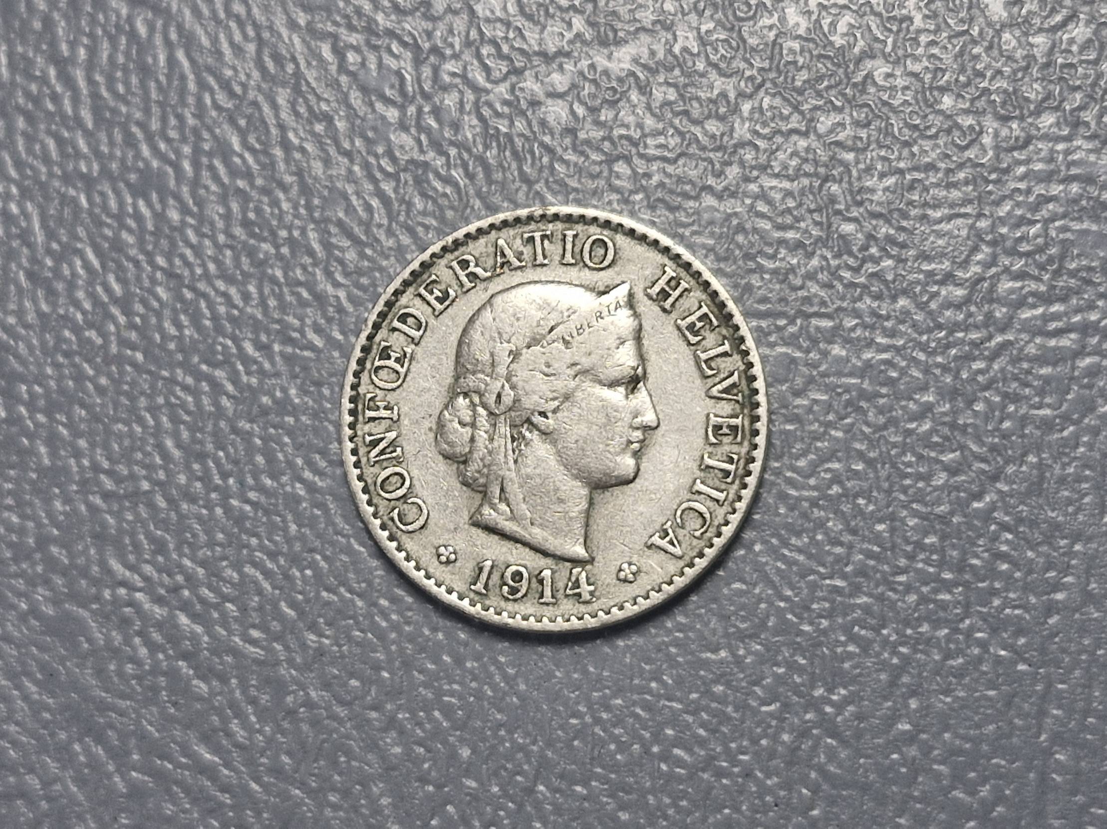 Šveicarija 5 rapenai, 1914 KM# 26