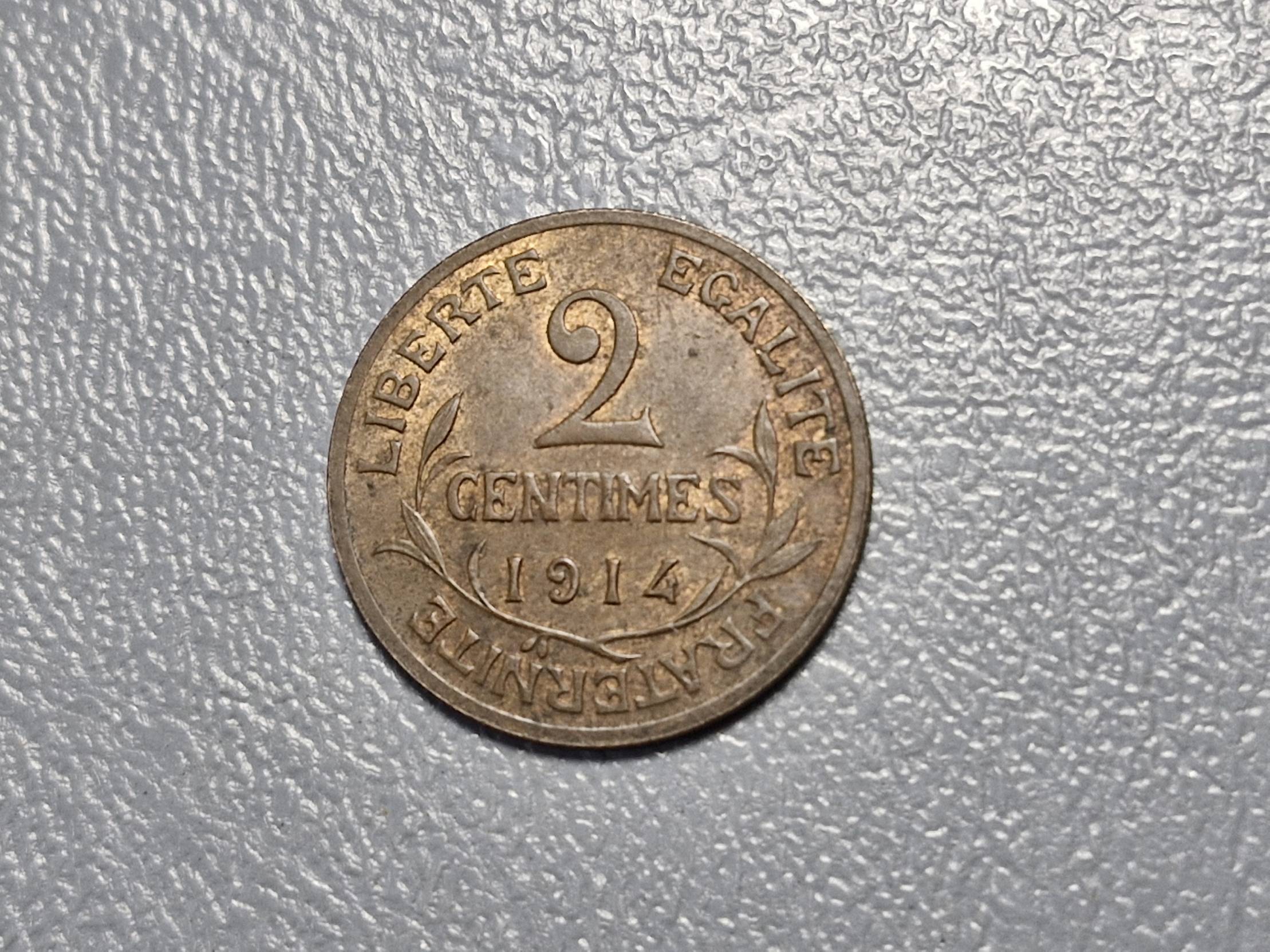 Prancūzija 2 santimai, 1914 KM# 841