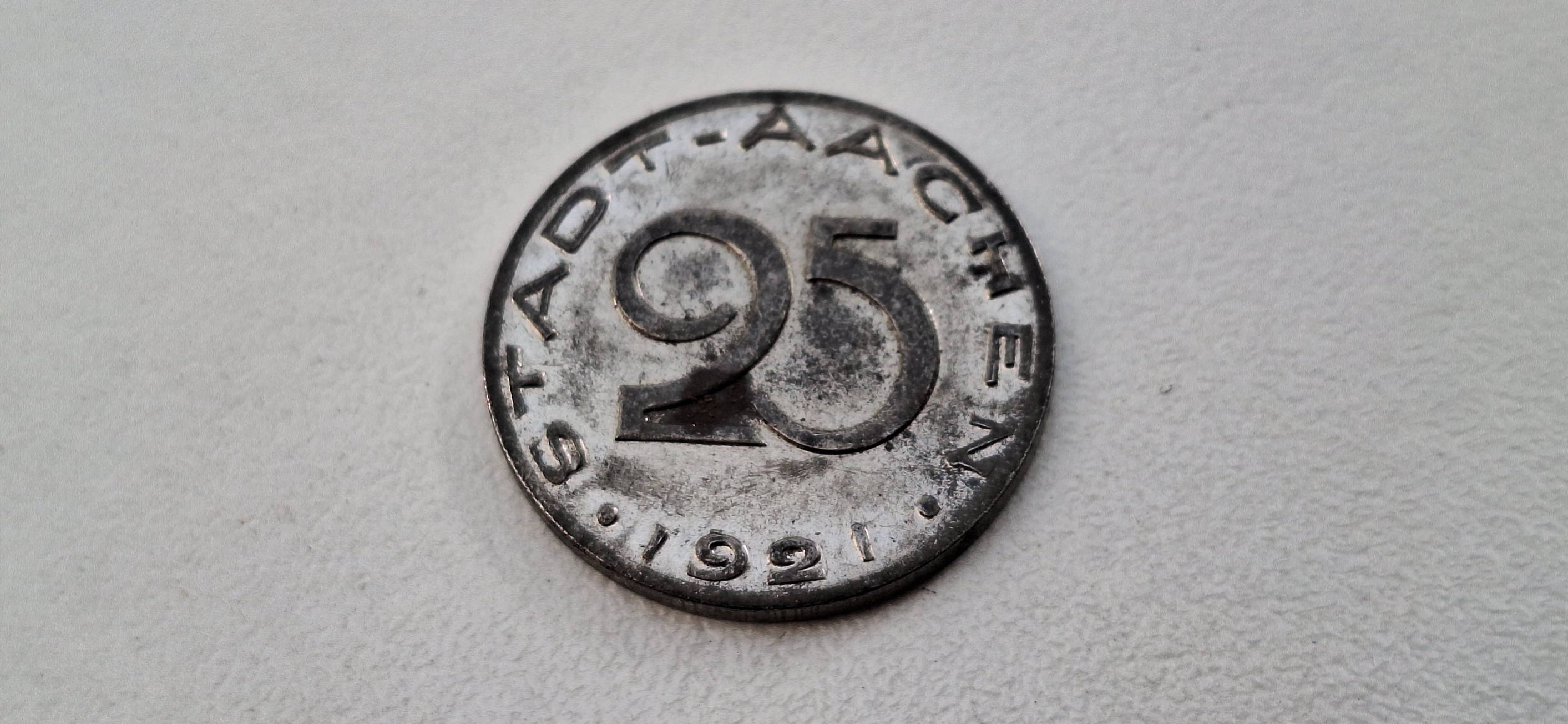 Vokietijos notgeldas 25 pfenigai 1921 Achenas