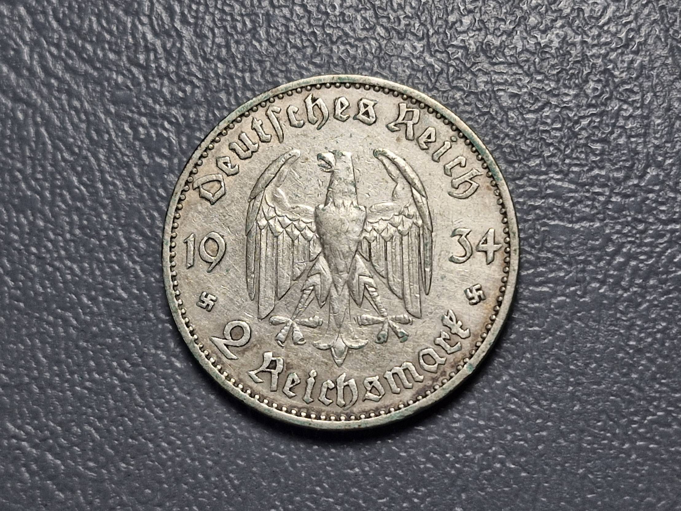 Trečiasis Reichas 2 reichsmarkės, 1934E KM# 81 AG