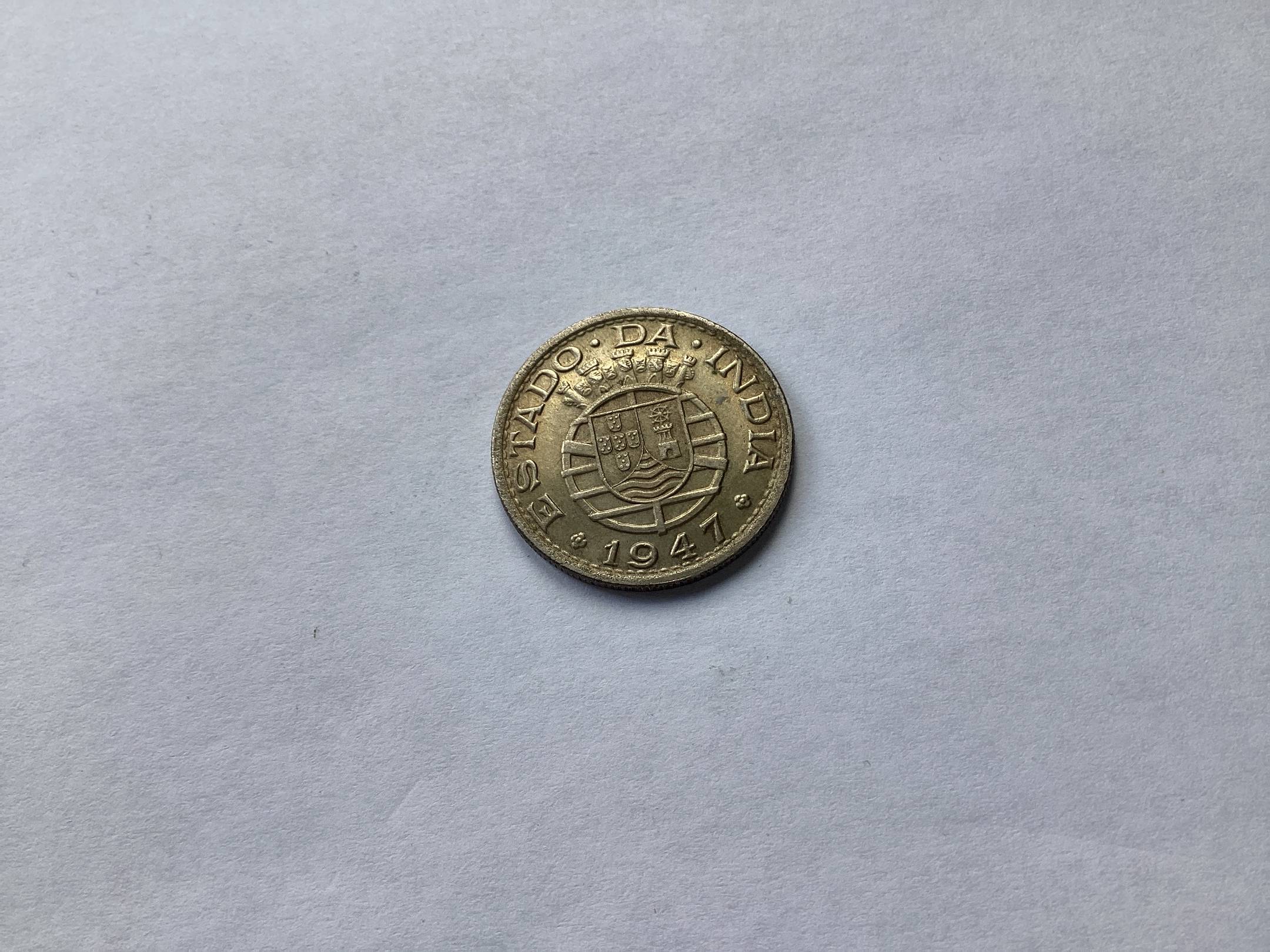 Portugalu Indija 1/2 rupijos 1947 reta