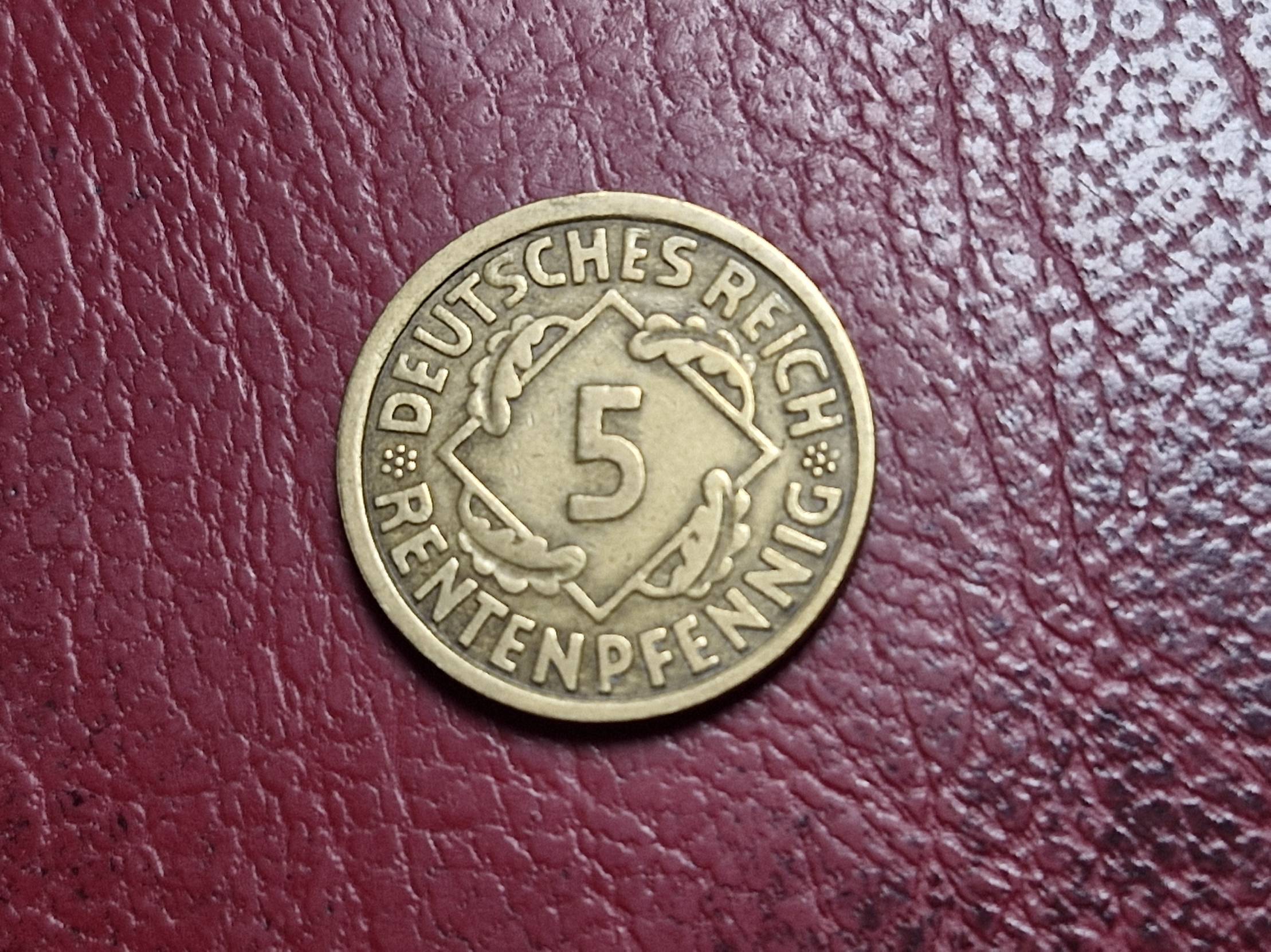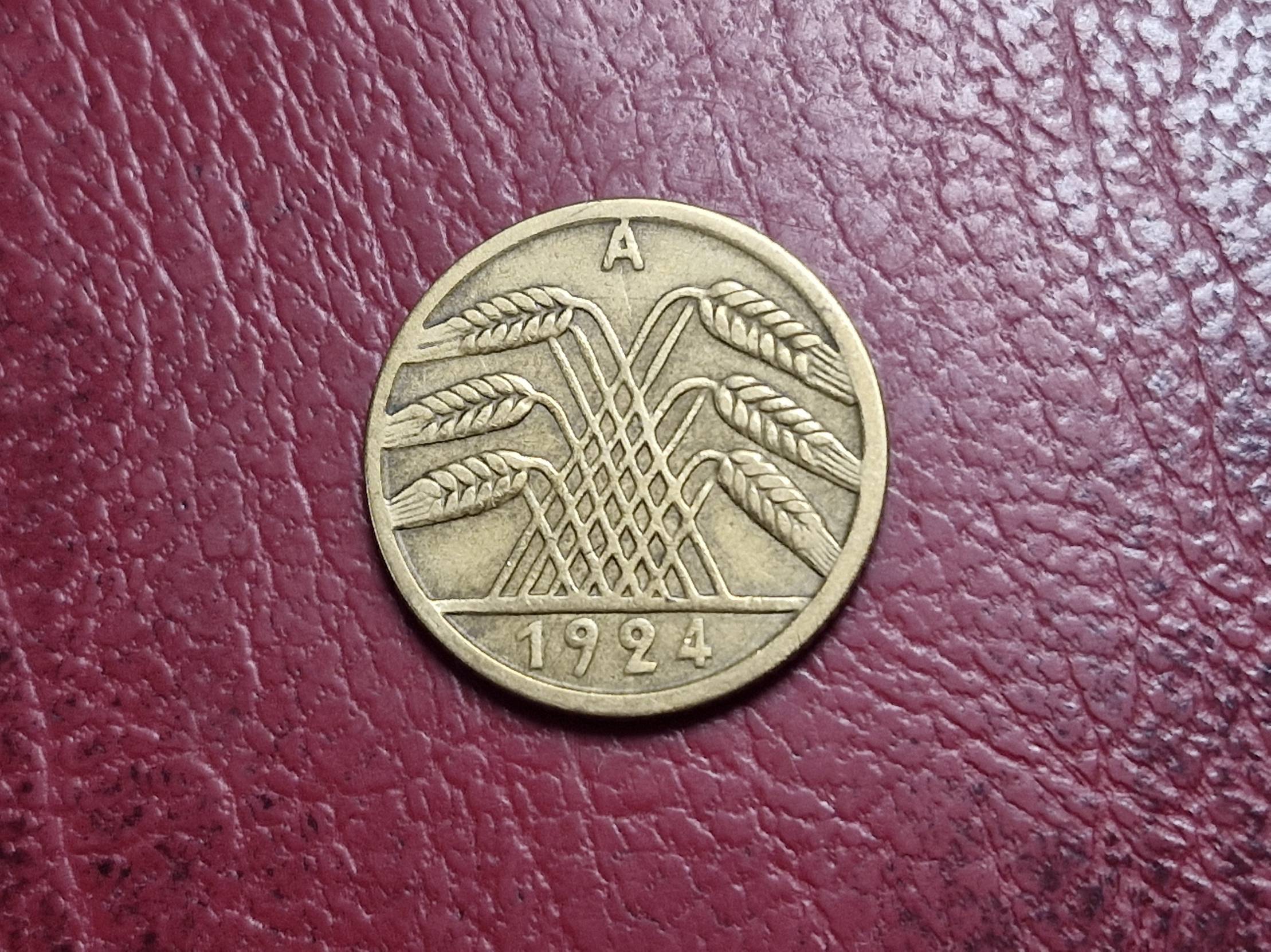1924, Germany, rentenpfennig, 5